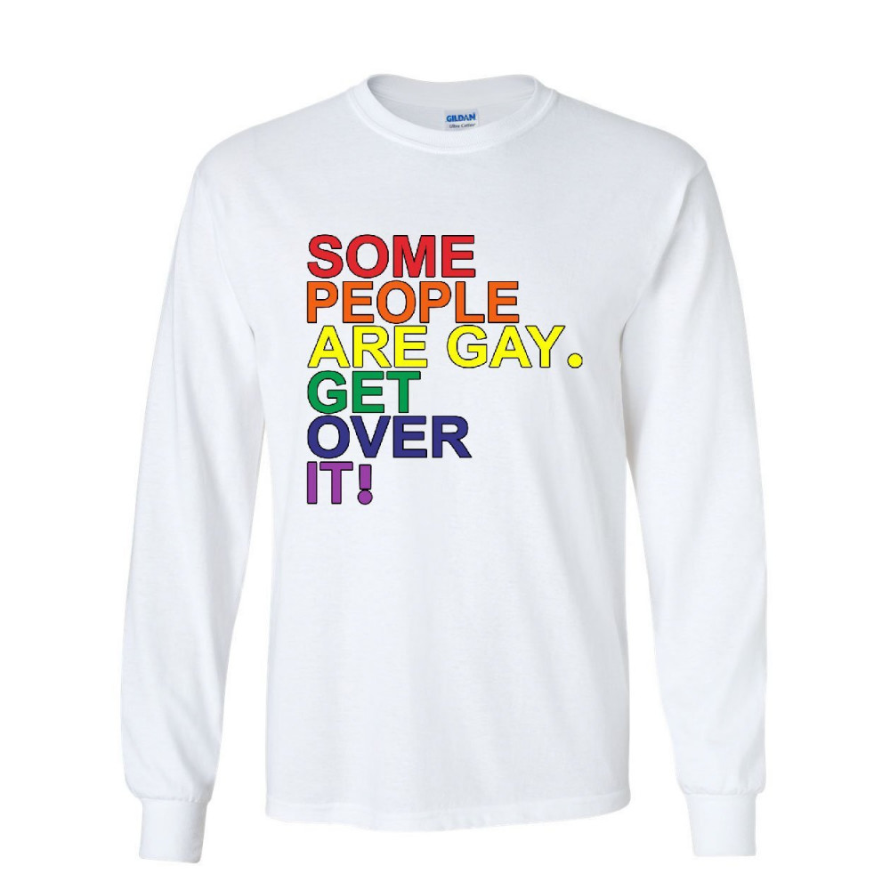SOME PEOPLE ARE GAY. GET OVER IT! long sleeve t-shirt lgbtq pride rainbow tee white