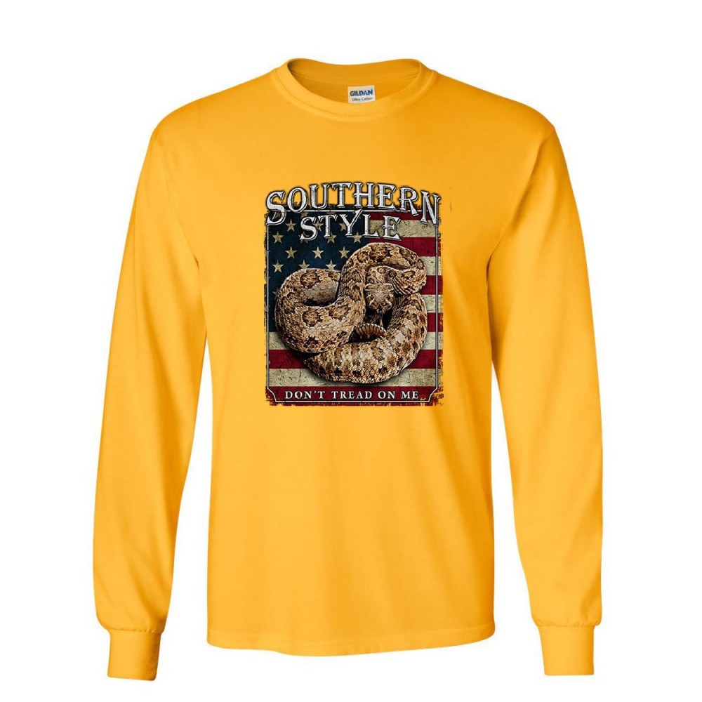 SOUTHERN STYLE RATTLESNAKE long sleeve t-shirt don't tread on me gadsden usa tee yellow
