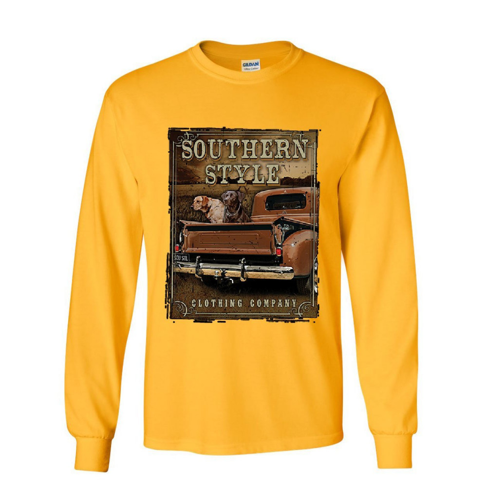 SOUTHERN STYLE long sleeve t-shirt truck country farm labrador retriever tee yellow