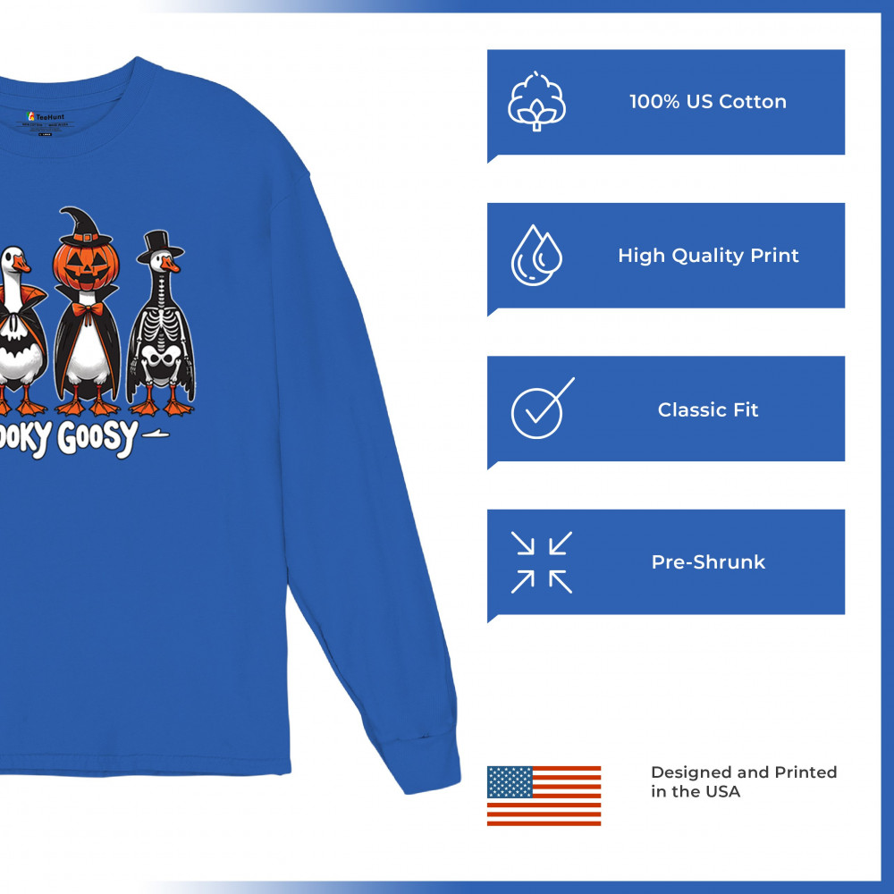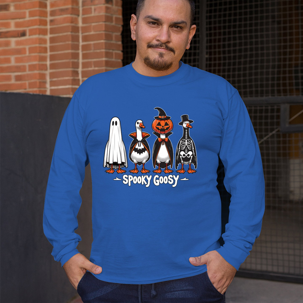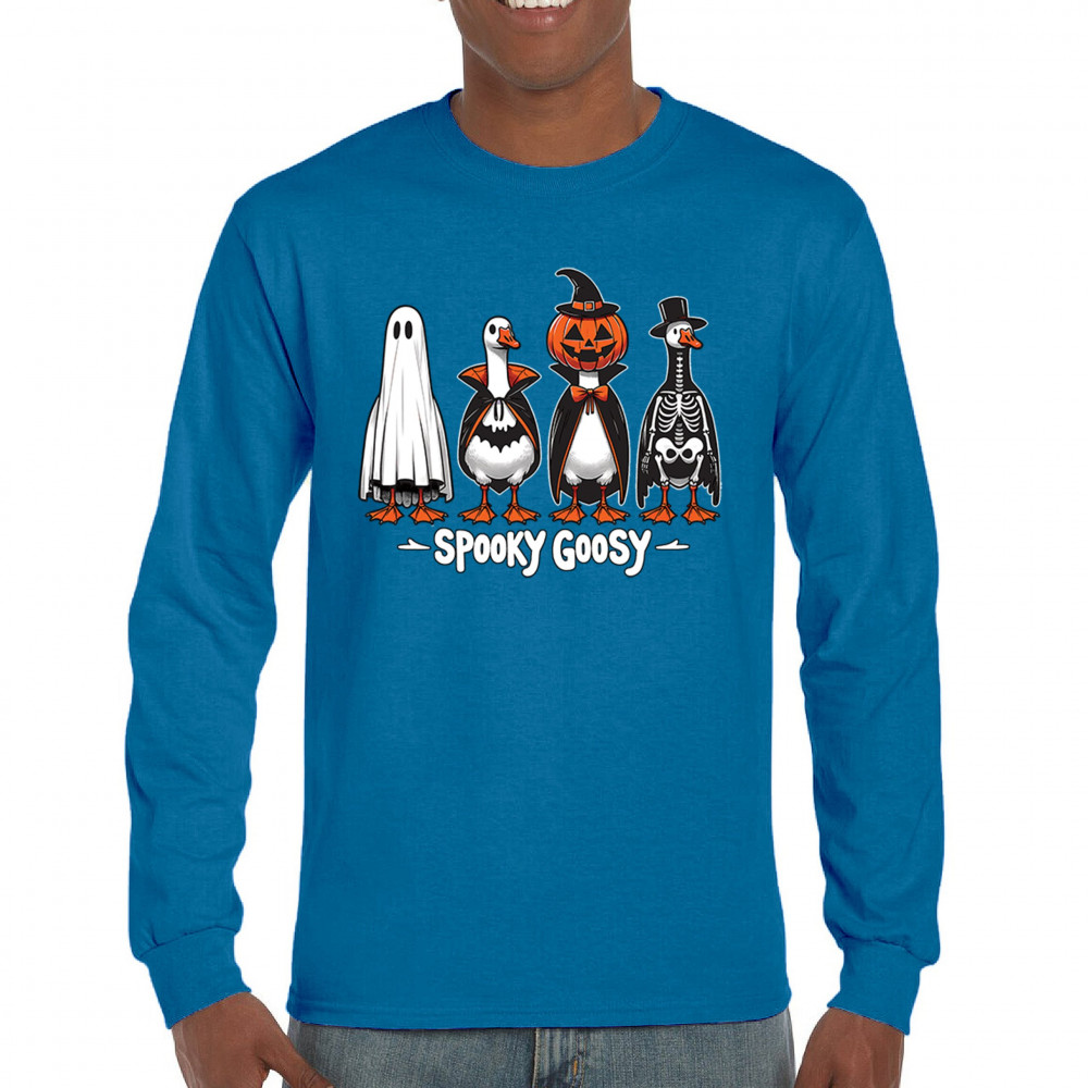 Bring the spooky fun to life with this Spooky Goosy Halloween design featuring geese in witch, skeleton, vampire, and pumpkin costumes. Perfect for haunted house nights, October 31 trick-or-treat events, or monster mash gatherings. A funny and festive choice for goose lovers and Halloween enthusiasts who enjoy creepy costume vibes.