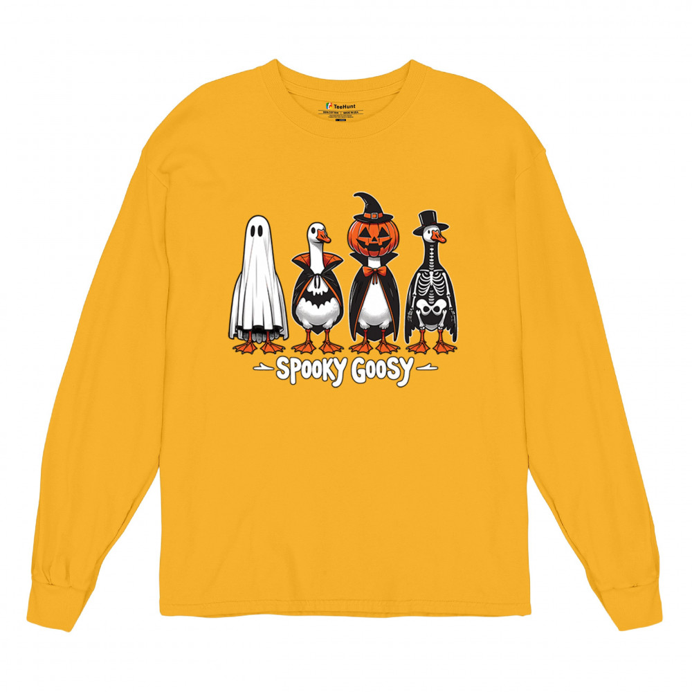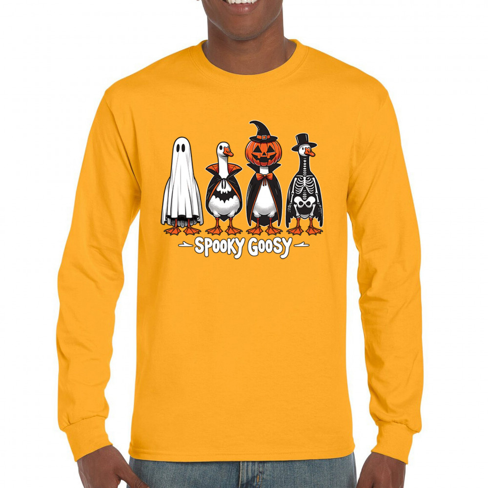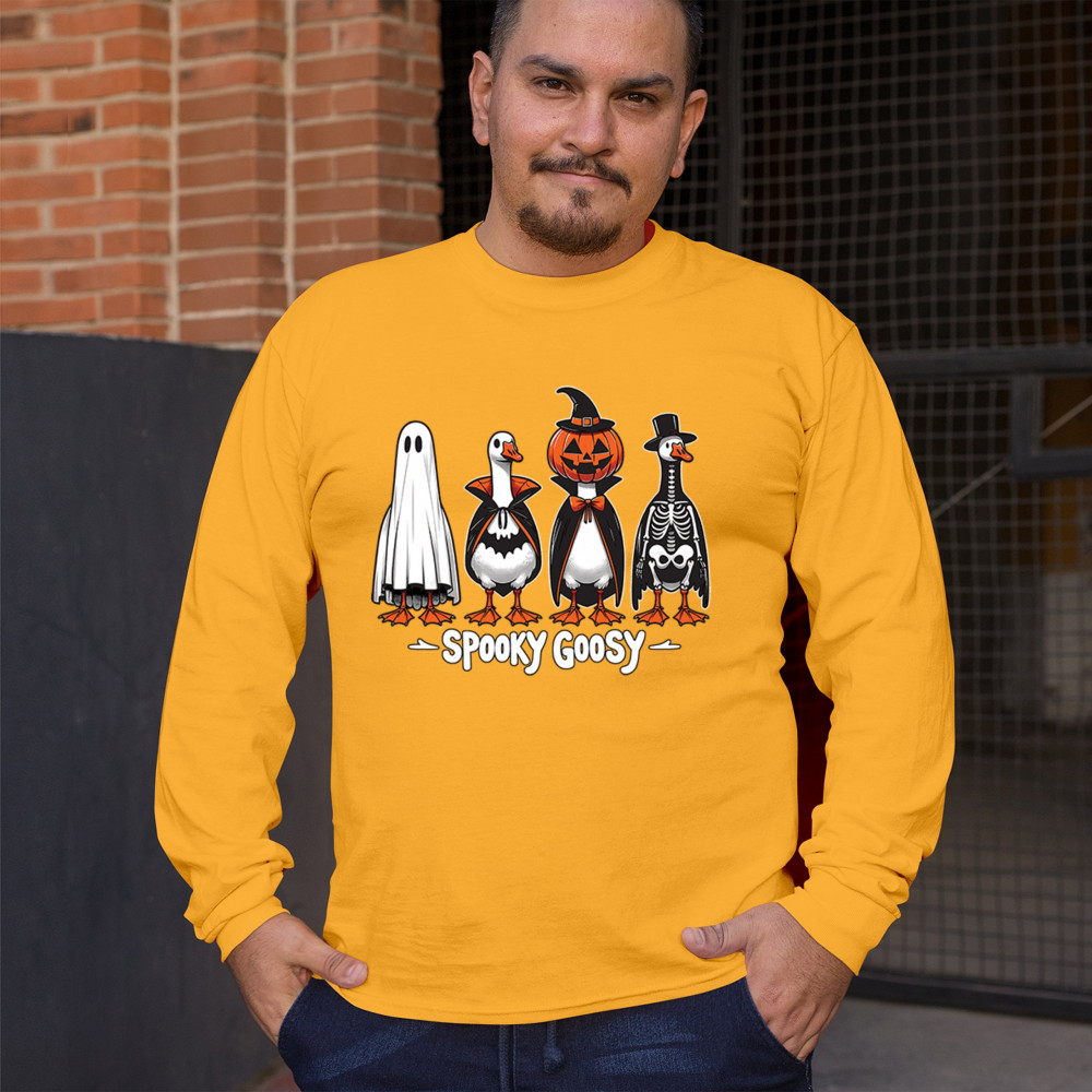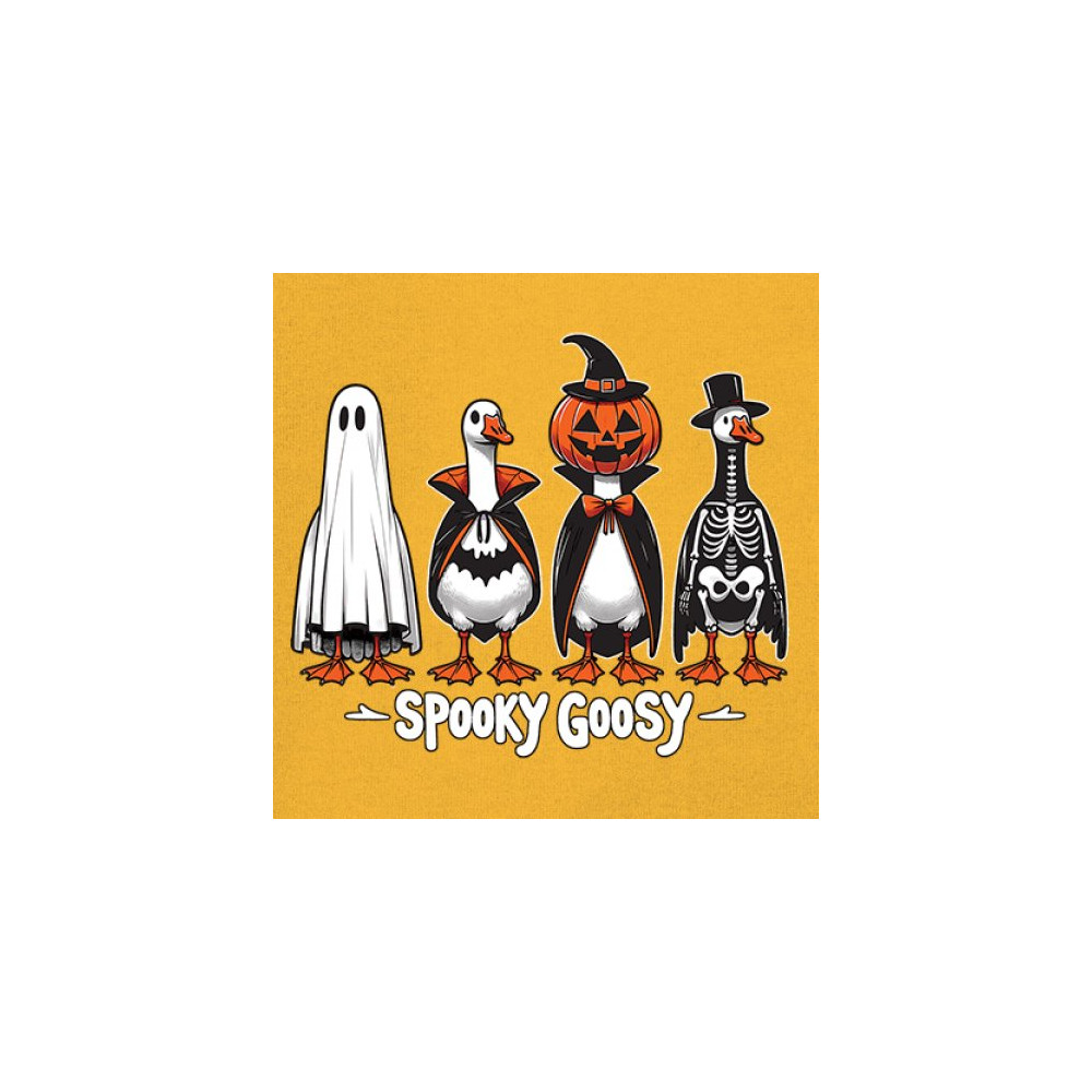 Bring the spooky fun to life with this Spooky Goosy Halloween design featuring geese in witch, skeleton, vampire, and pumpkin costumes. Perfect for haunted house nights, October 31 trick-or-treat events, or monster mash gatherings. A funny and festive choice for goose lovers and Halloween enthusiasts who enjoy creepy costume vibes.