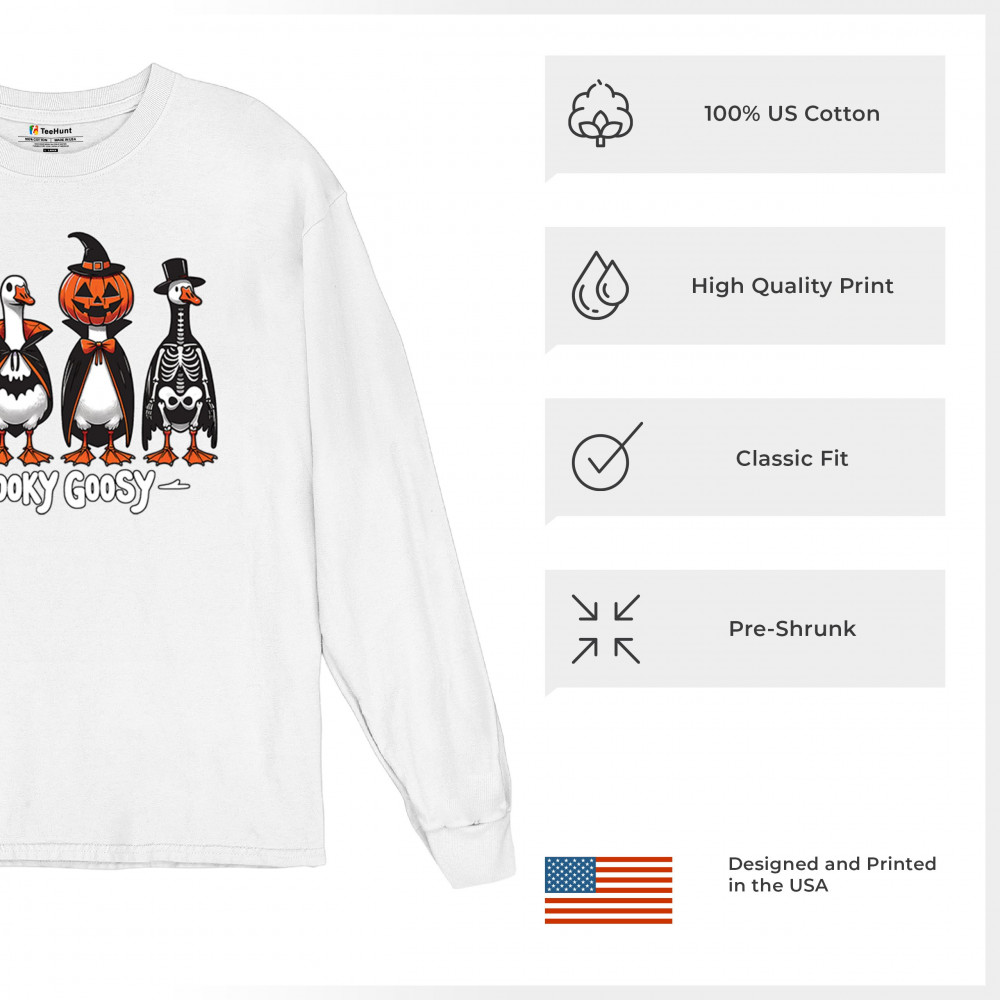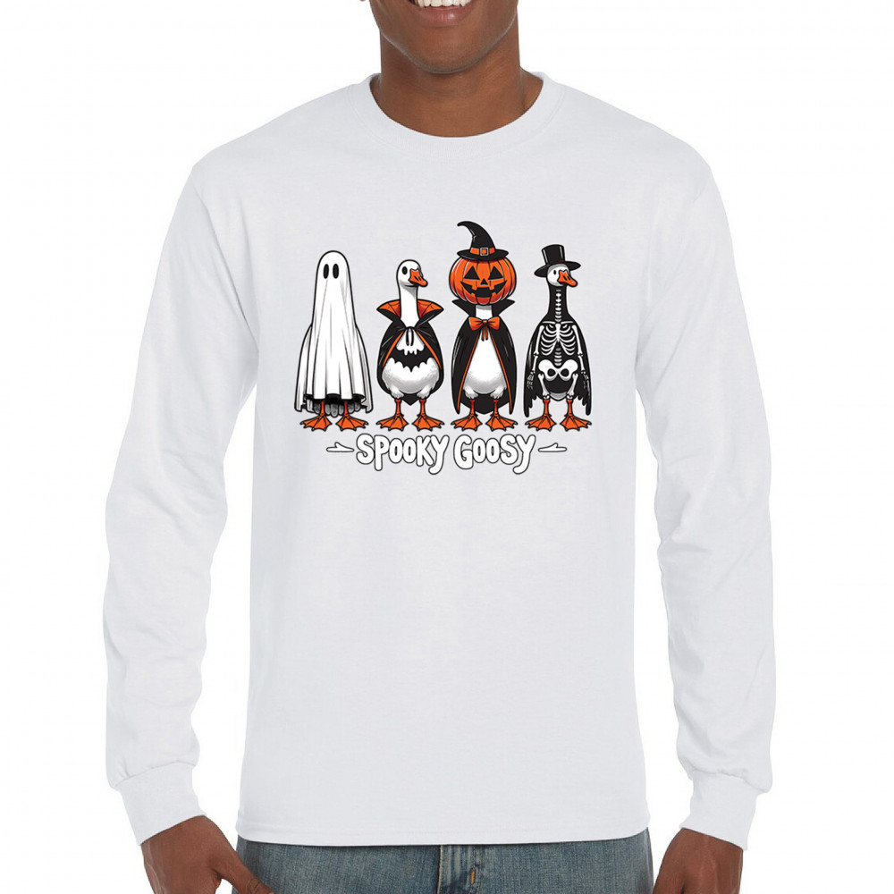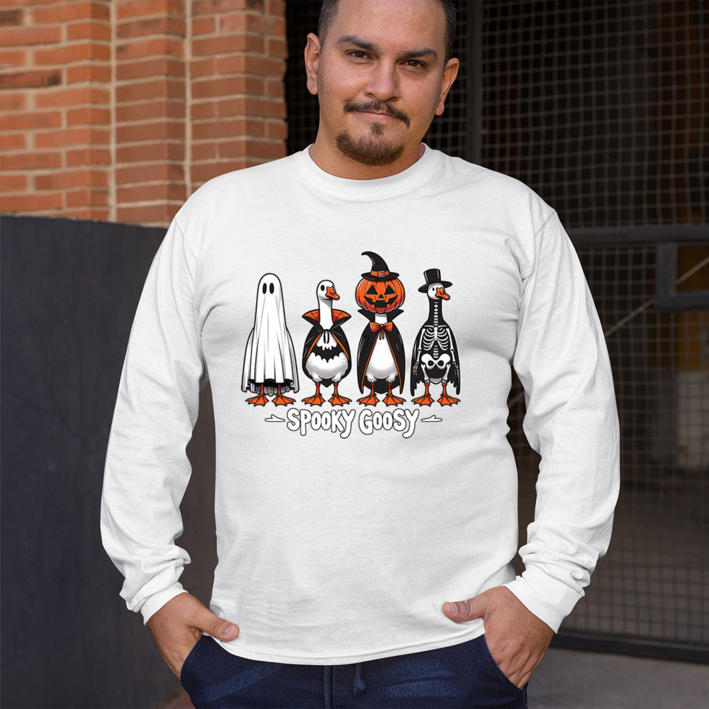 Bring the spooky fun to life with this Spooky Goosy Halloween design featuring geese in witch, skeleton, vampire, and pumpkin costumes. Perfect for haunted house nights, October 31 trick-or-treat events, or monster mash gatherings. A funny and festive choice for goose lovers and Halloween enthusiasts who enjoy creepy costume vibes.
