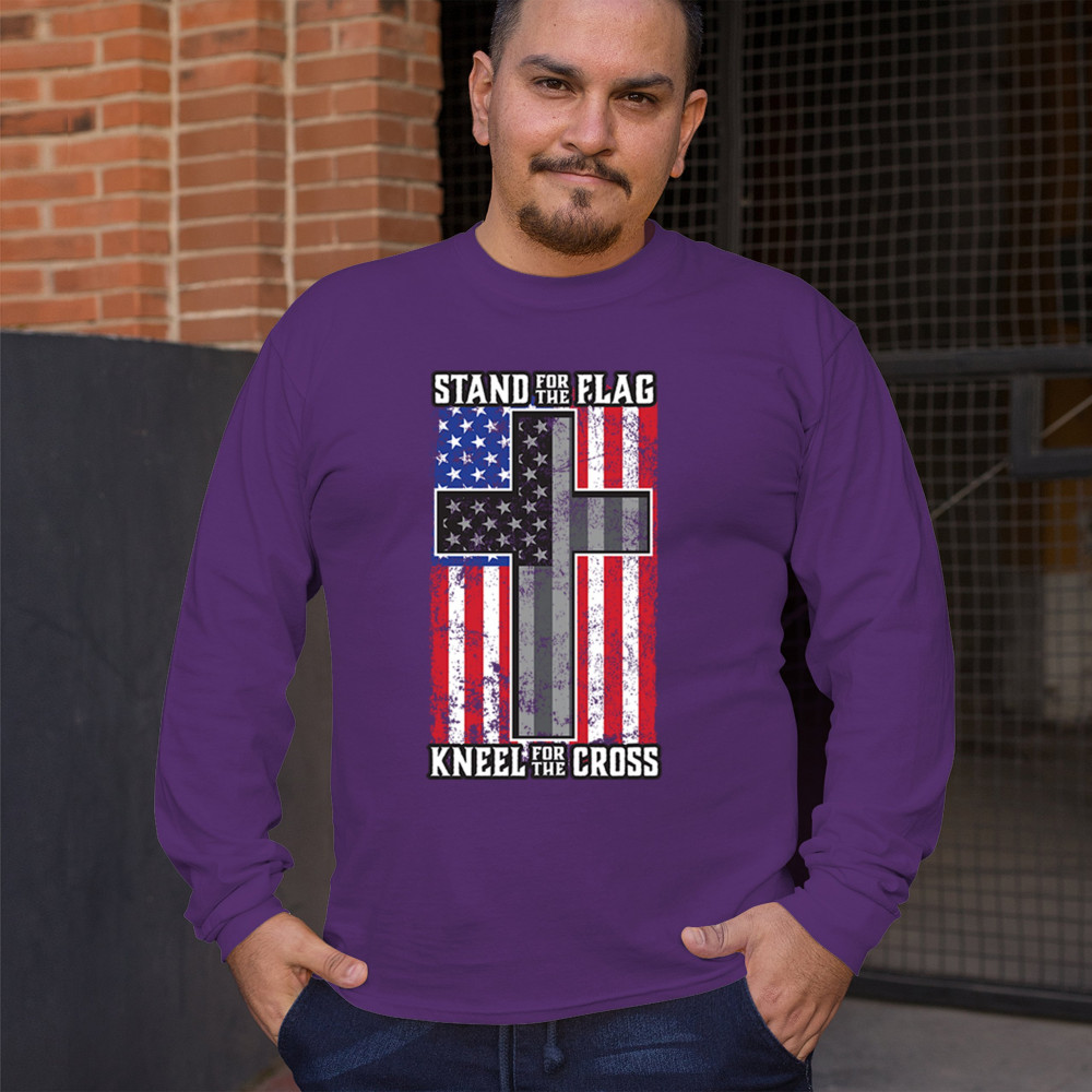 Embrace your identity as an American patriot and devout Christian with our Stand for the Flag Kneel for the Cross tee, a powerful testament to your values. Crafted with the American flag and the sacred cross, this design serves as both Trump merchandise and a symbol of unwavering faith. Whether you're a veteran, active military member, or simply a defender of liberty, this shirt proudly upholds the principles of the Second Amendment while honoring the legacy of Jesus Christ.