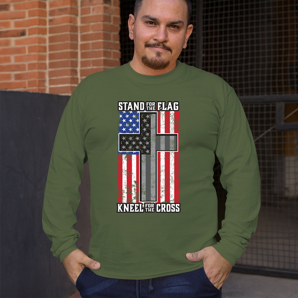 Embrace your identity as an American patriot and devout Christian with our Stand for the Flag Kneel for the Cross tee, a powerful testament to your values. Crafted with the American flag and the sacred cross, this design serves as both Trump merchandise and a symbol of unwavering faith. Whether you're a veteran, active military member, or simply a defender of liberty, this shirt proudly upholds the principles of the Second Amendment while honoring the legacy of Jesus Christ.
