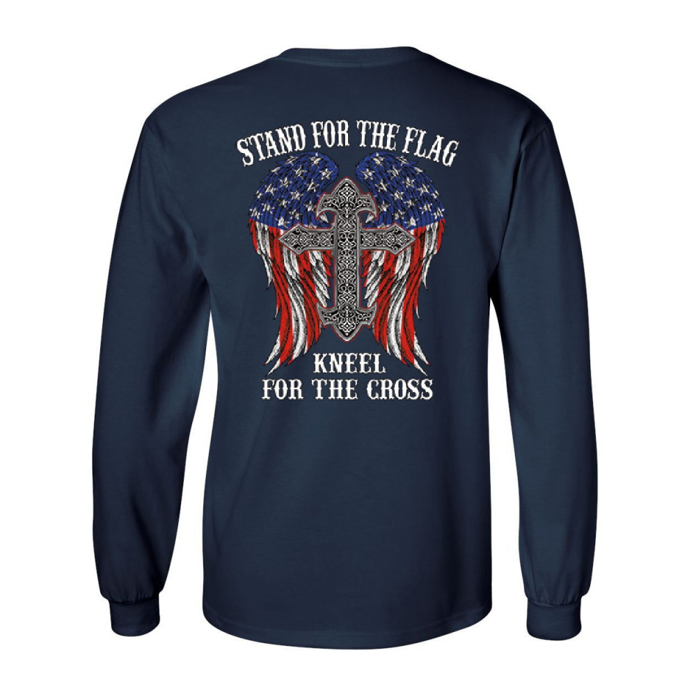 STAND FOR THE FLAG KNEEL FOR THE CROSS long sleeve t-shirt patriot political tee navy blue
