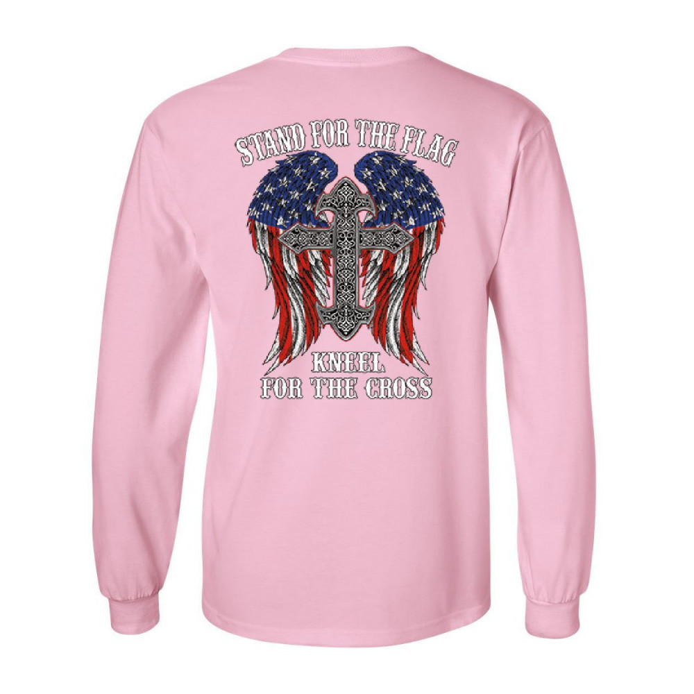 STAND FOR THE FLAG KNEEL FOR THE CROSS long sleeve t-shirt patriot political tee light pink
