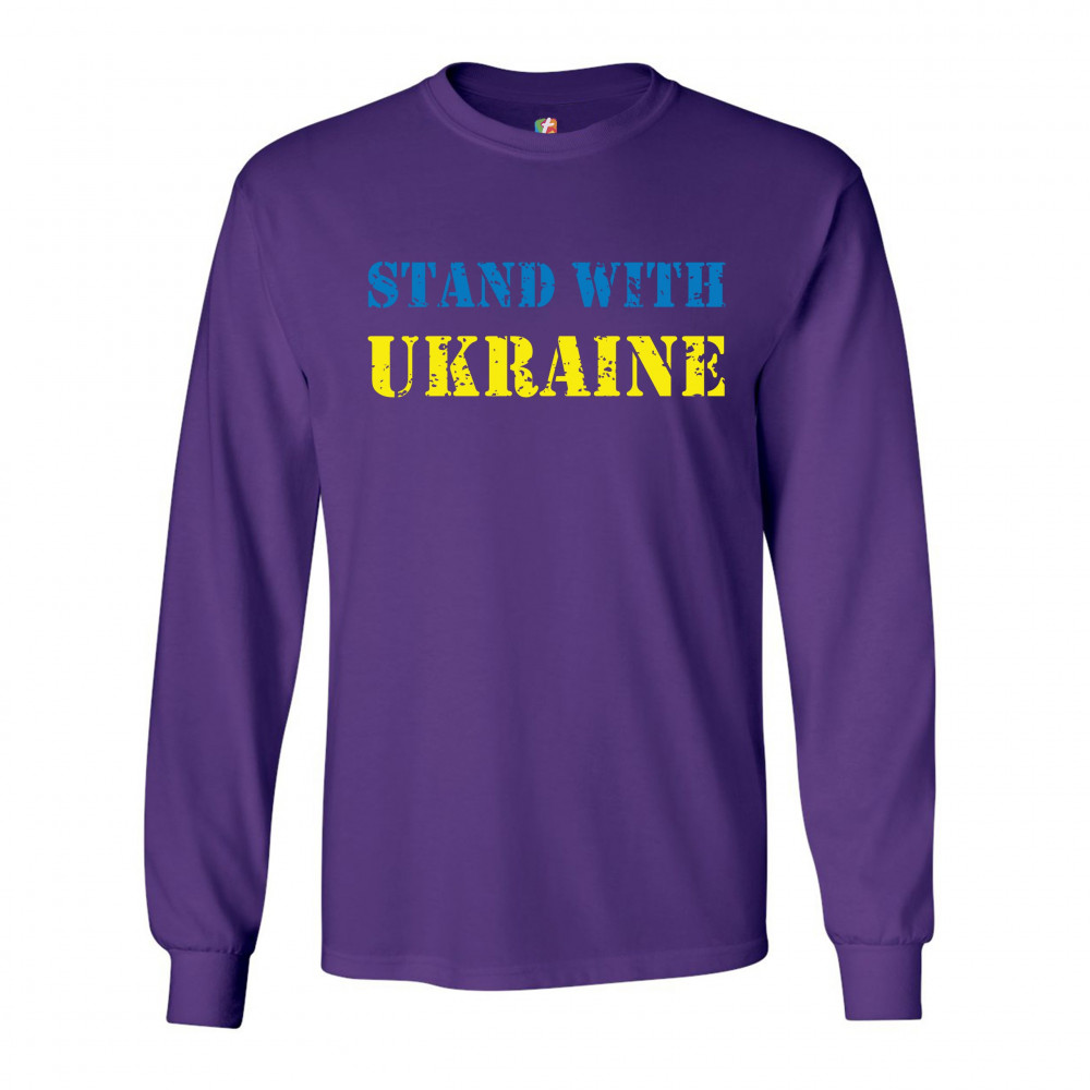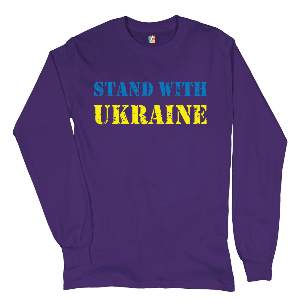 STAND WITH UKRAINE long sleeve t-shirt stop war support ukrainians purple