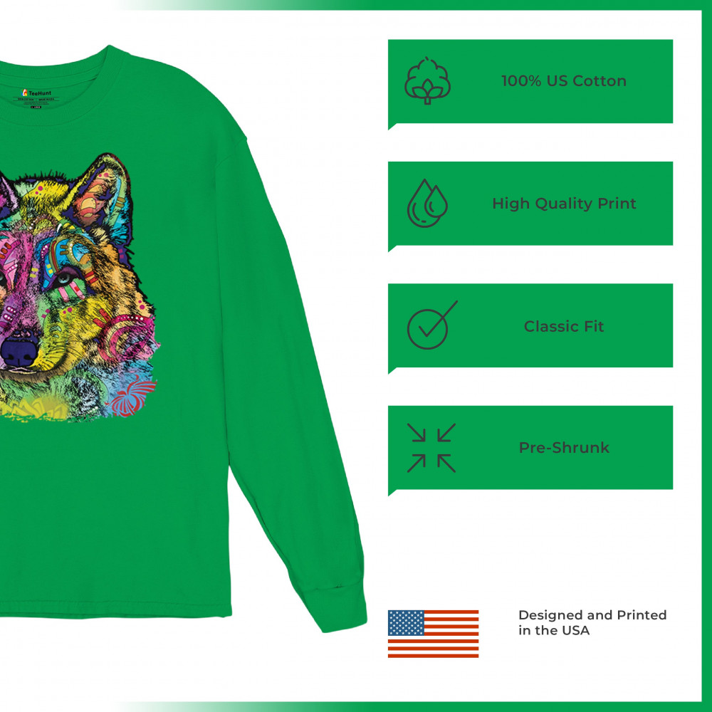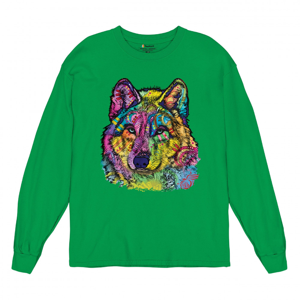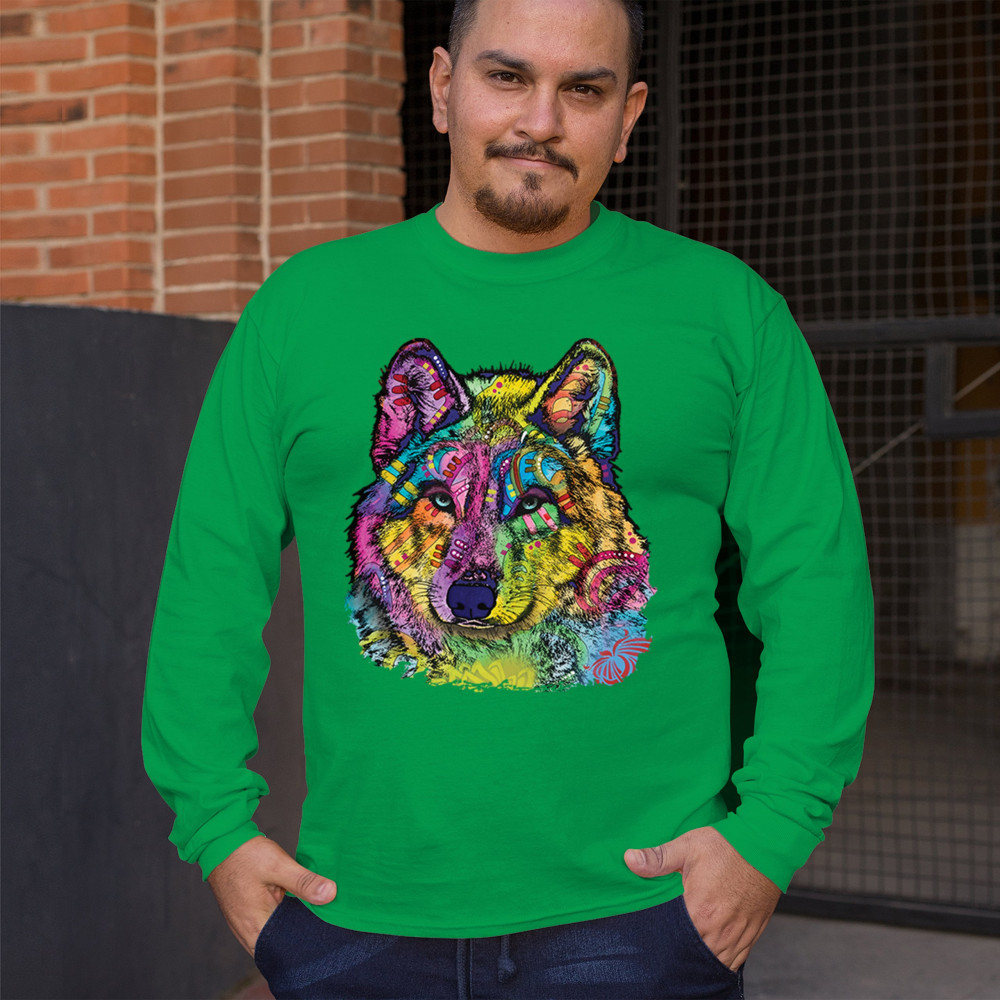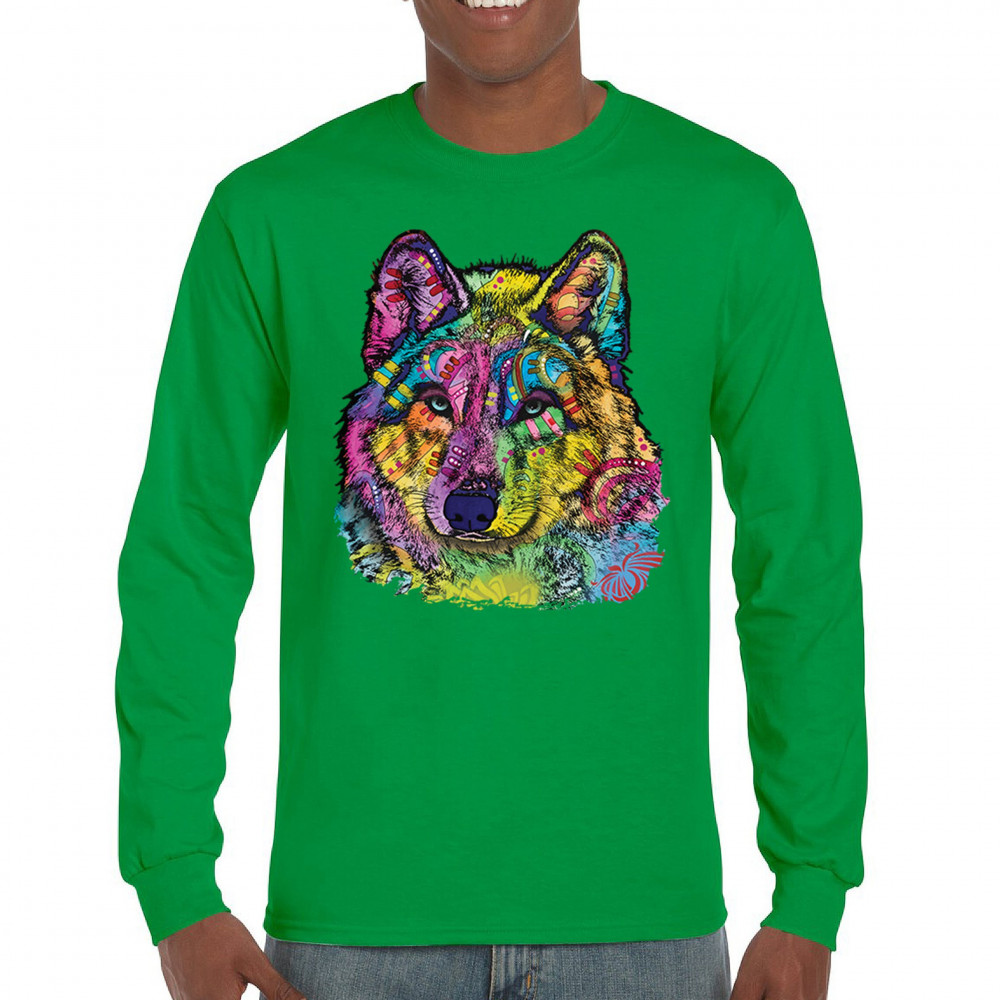 STARE OF THE WOLF long sleeve t-shirt dean russo colorful neon animal art green