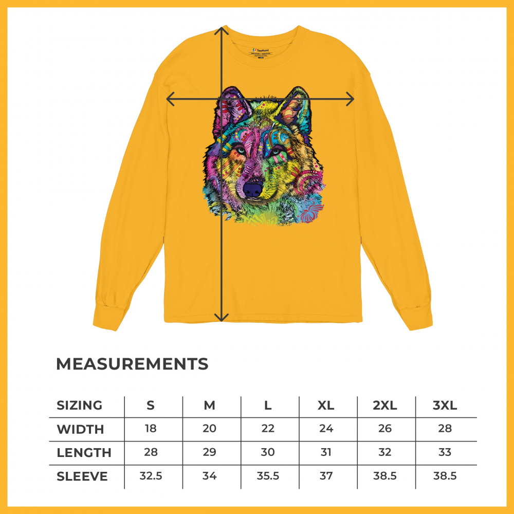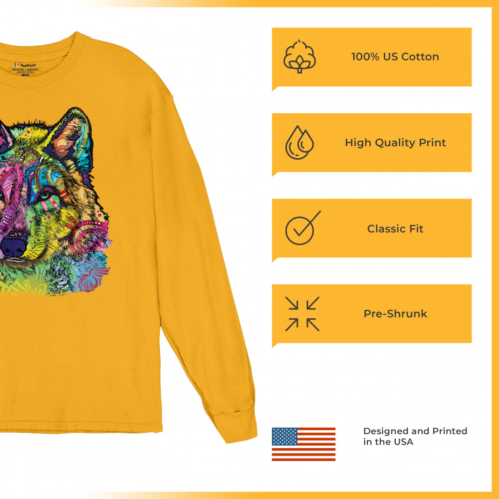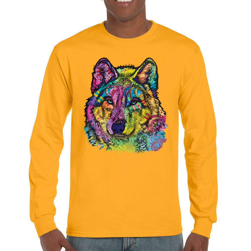 STARE OF THE WOLF long sleeve t-shirt dean russo colorful neon animal art yellow