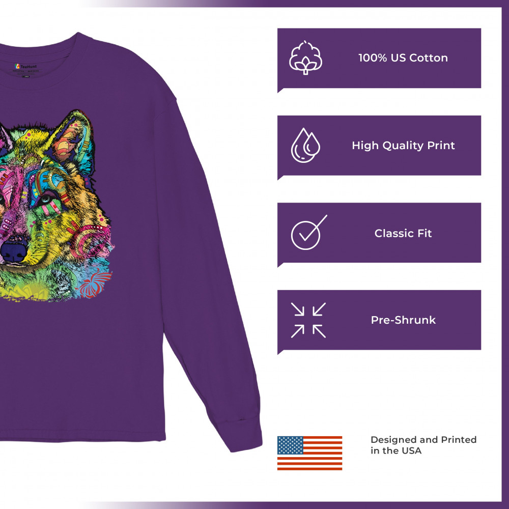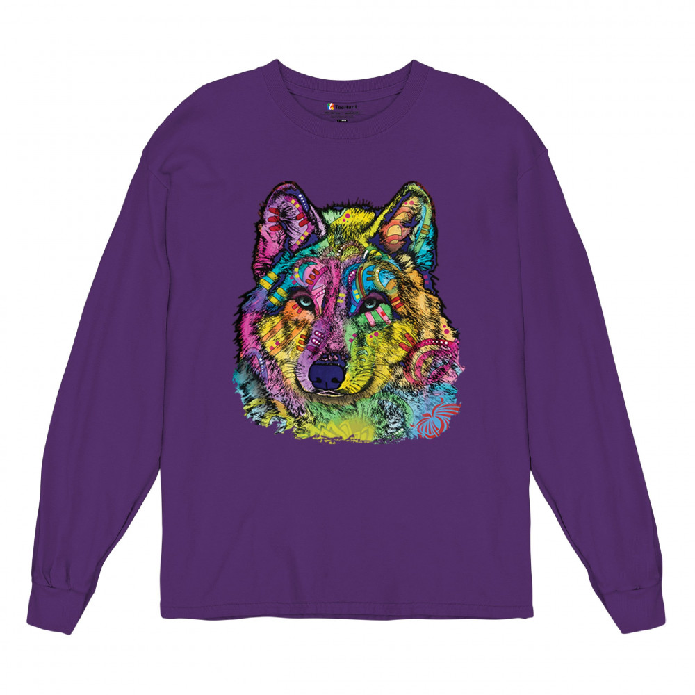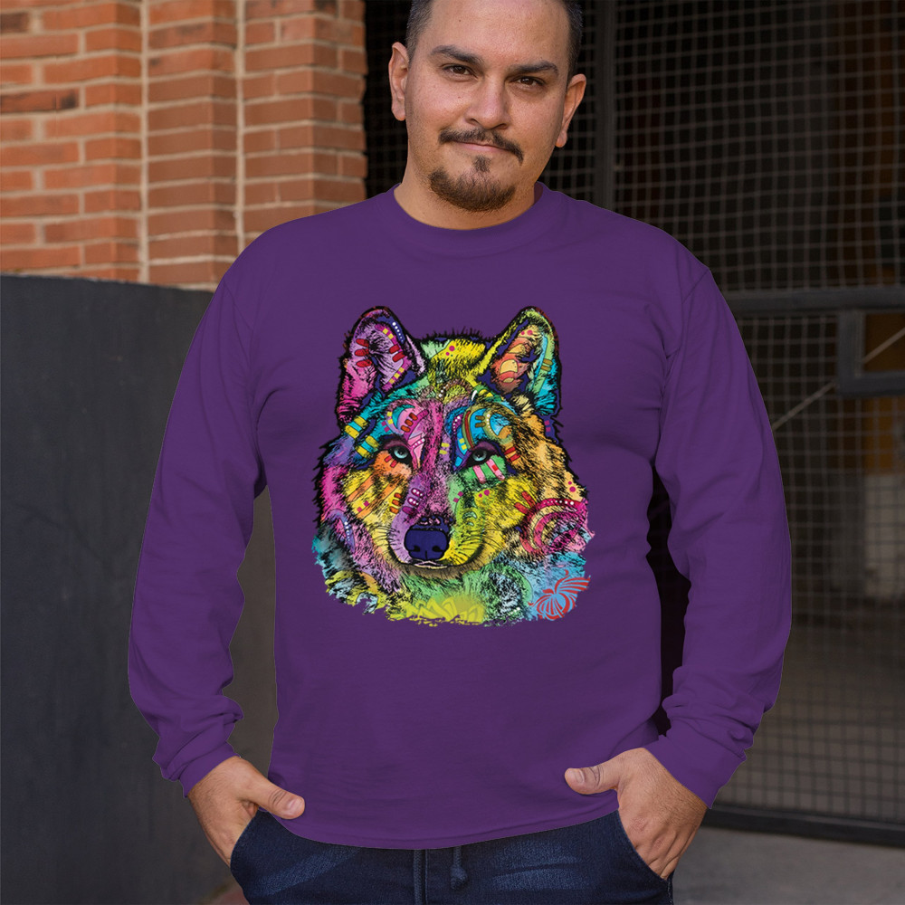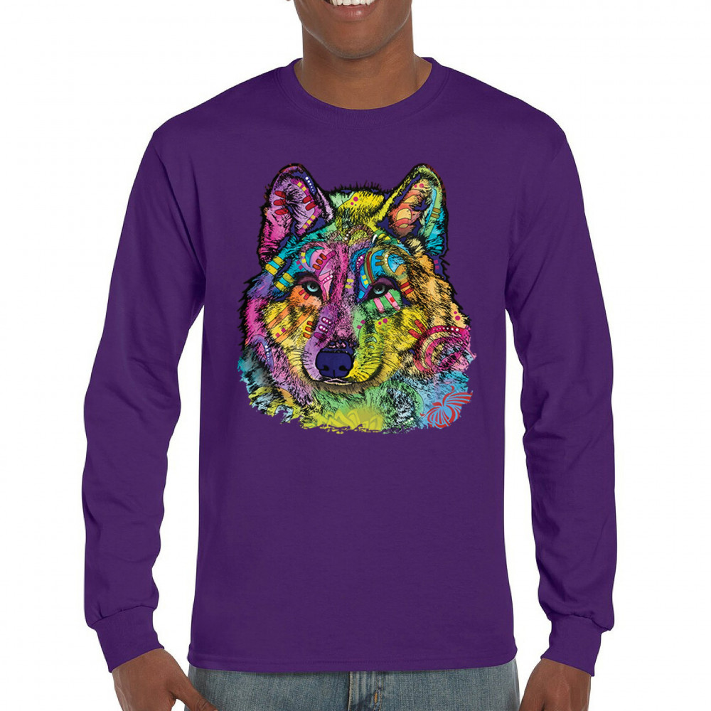 STARE OF THE WOLF long sleeve t-shirt dean russo colorful neon animal art purple