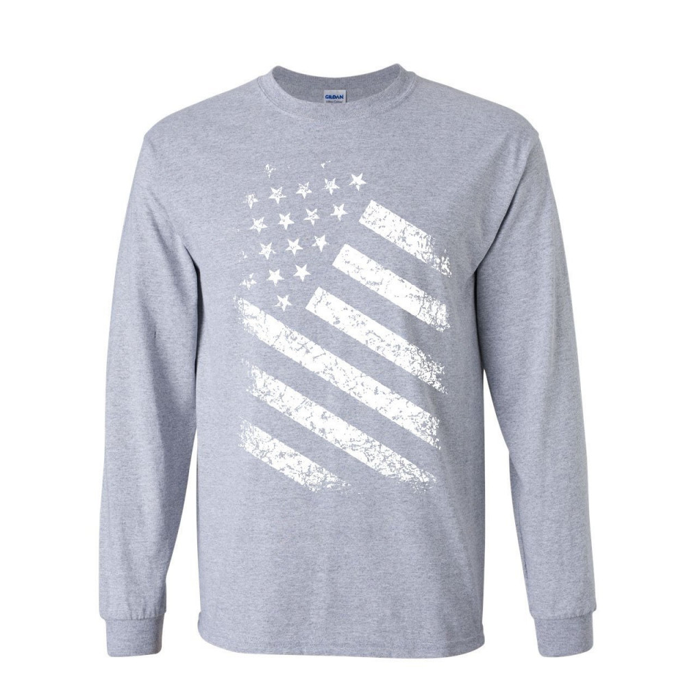 STARS AND STRIPES long sleeve t-shirt 4th of july united states flag pride tee gray