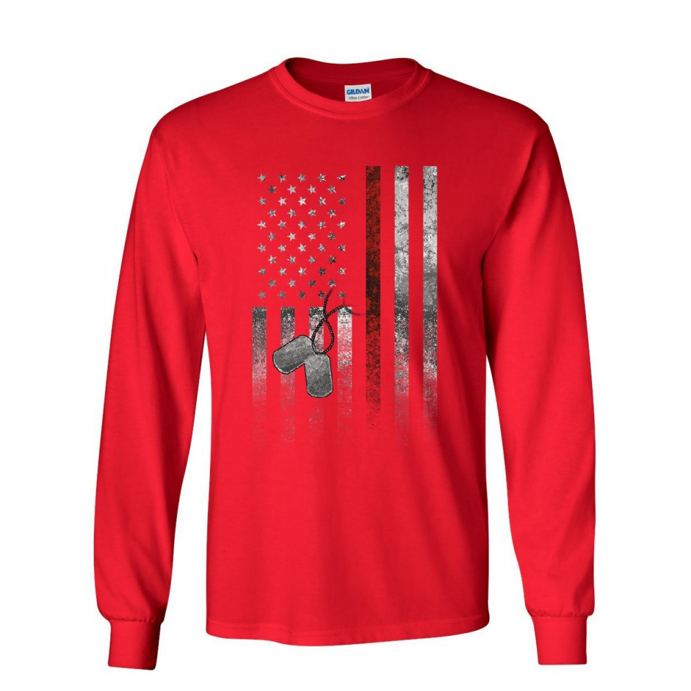 STARS AND STRIPES DOG TAGS long sleeve t-shirt military american patriot usa tee red