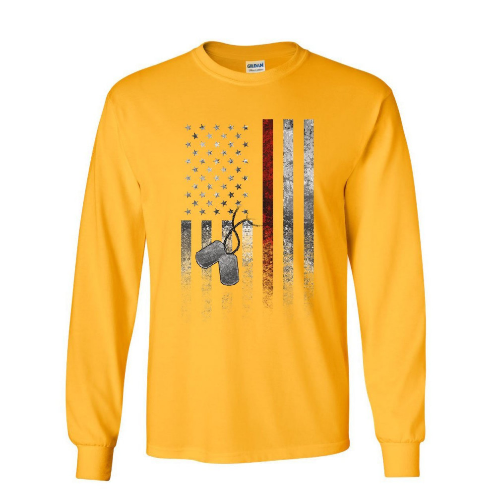 STARS AND STRIPES DOG TAGS long sleeve t-shirt military american patriot usa tee yellow