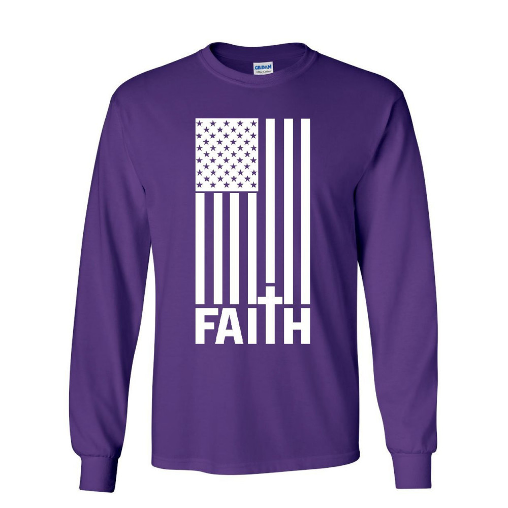 STARS AND STRIPES FAITH long sleeve t-shirt american values cross jesus god tee purple