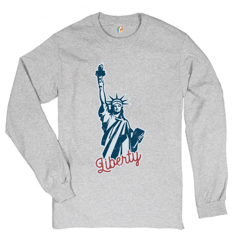 STATUE OF LIBERTY long sleeve t-shirt freedom independence 4th of july nyc usa gray