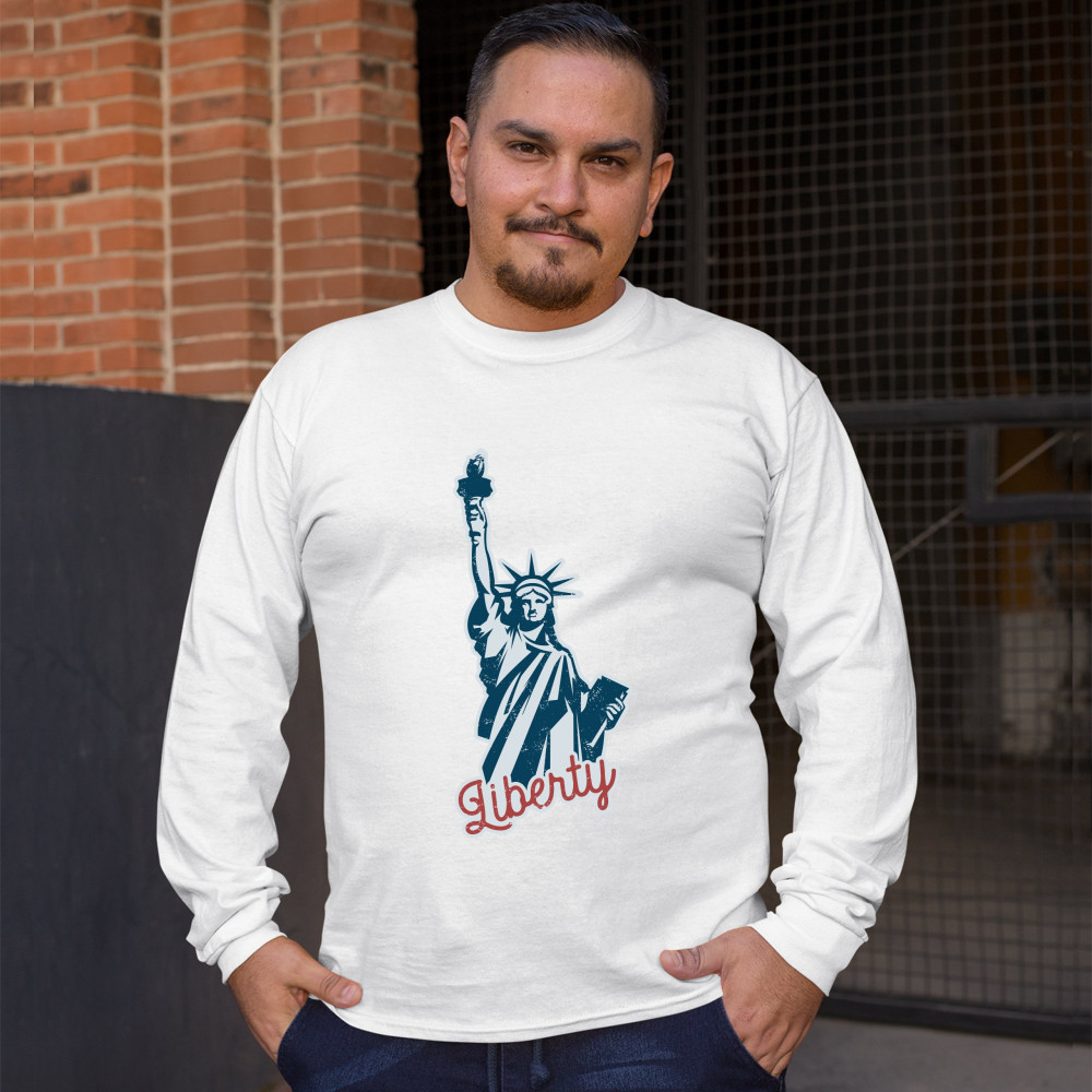 STATUE OF LIBERTY long sleeve t-shirt freedom independence 4th of july nyc usa white