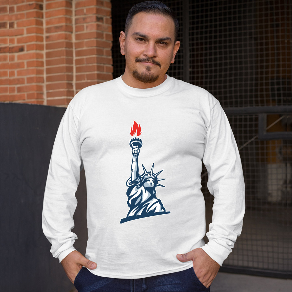STATUE OF LIBERTY long sleeve t-shirt manhattan new york 4th of july freedom white