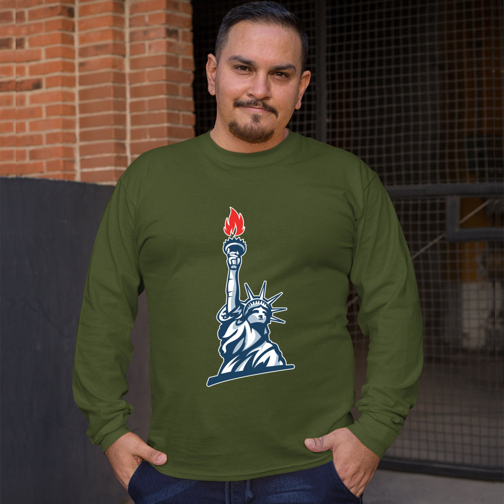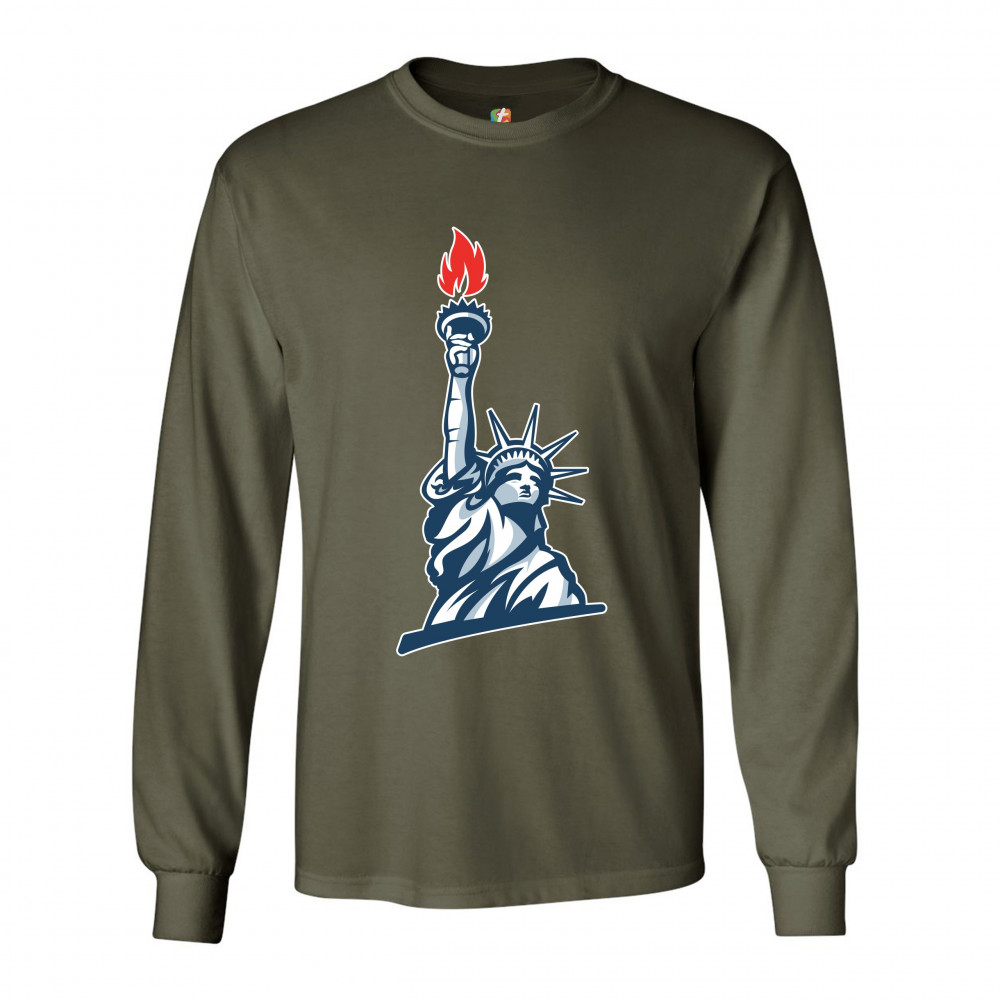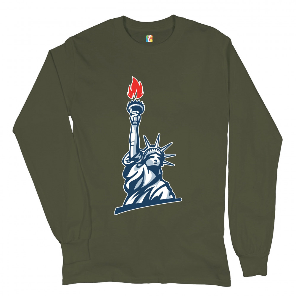 STATUE OF LIBERTY long sleeve t-shirt manhattan new york 4th of july freedom military green