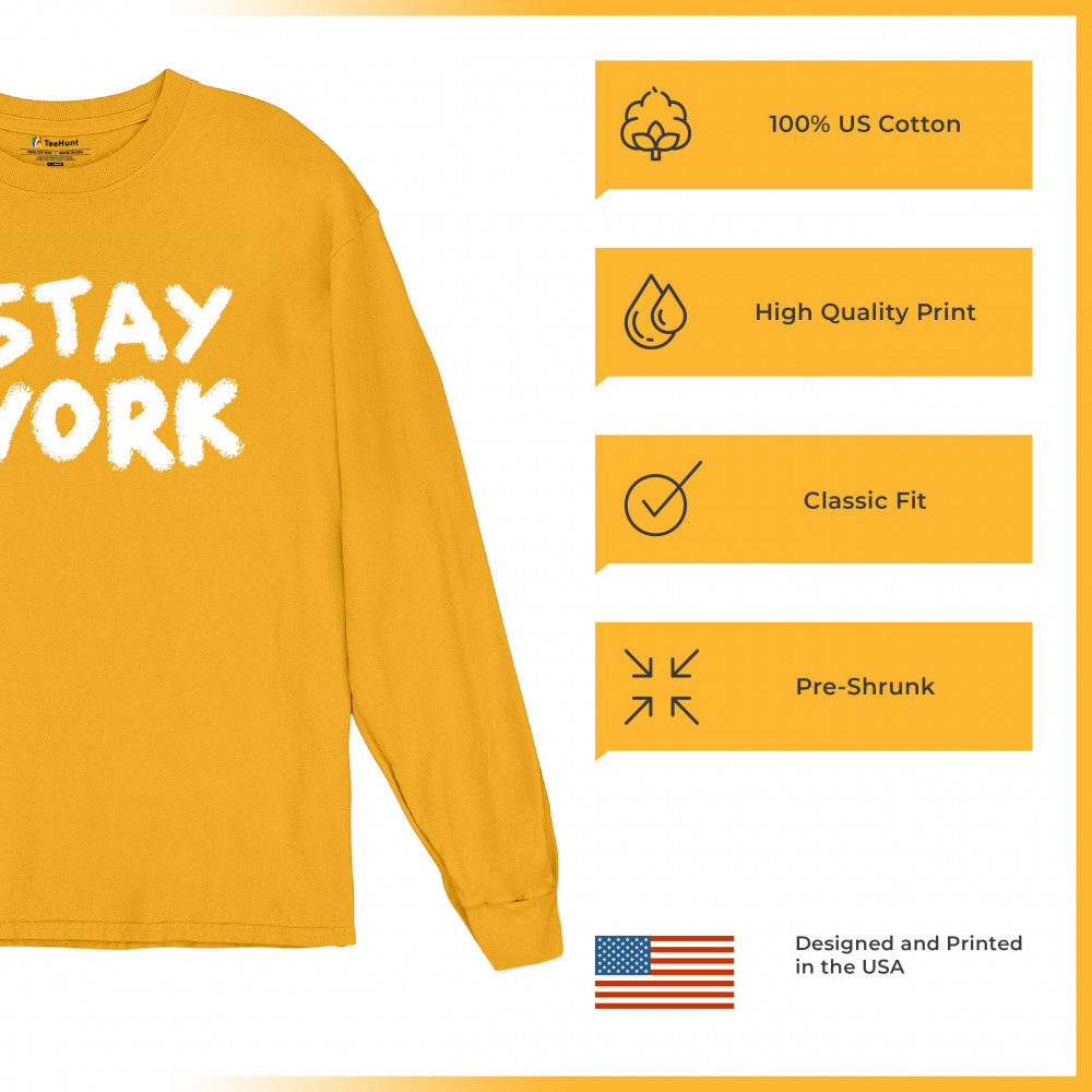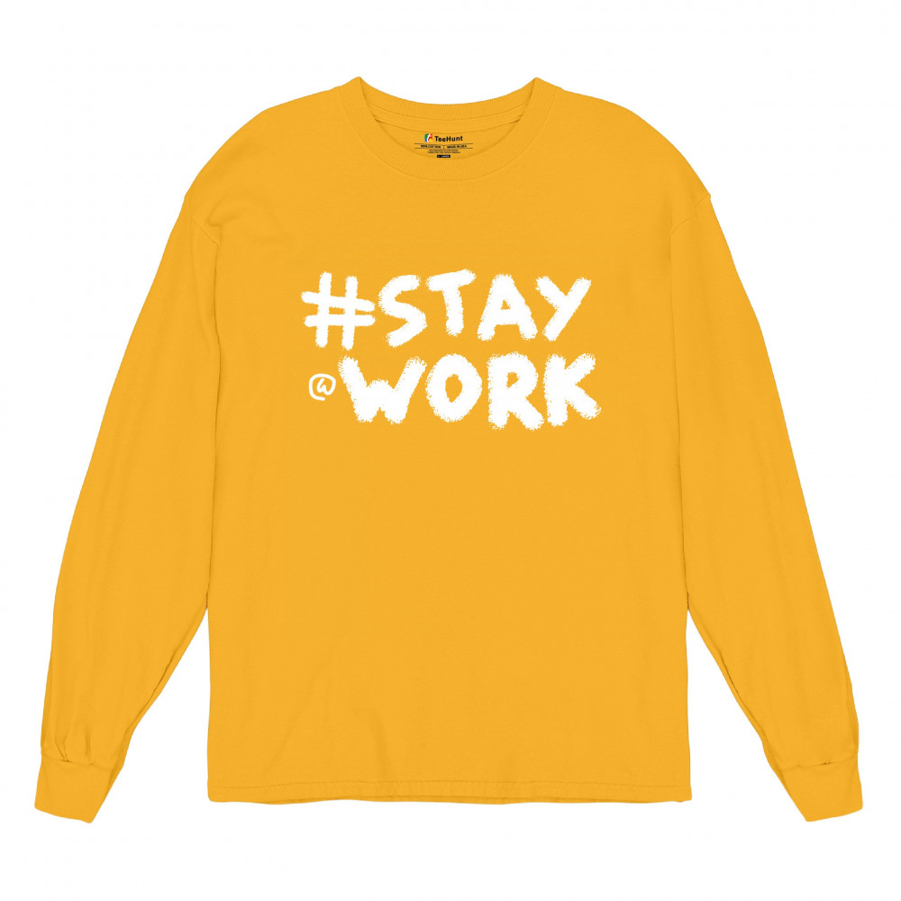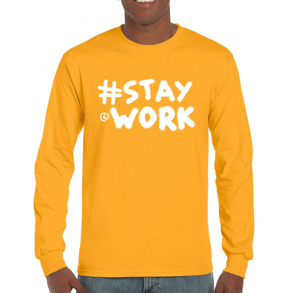 STAY AT WORK FUNNY ELON MUSK TWEET PARODY long sleeve t-shirt liberal sarcasm yellow
