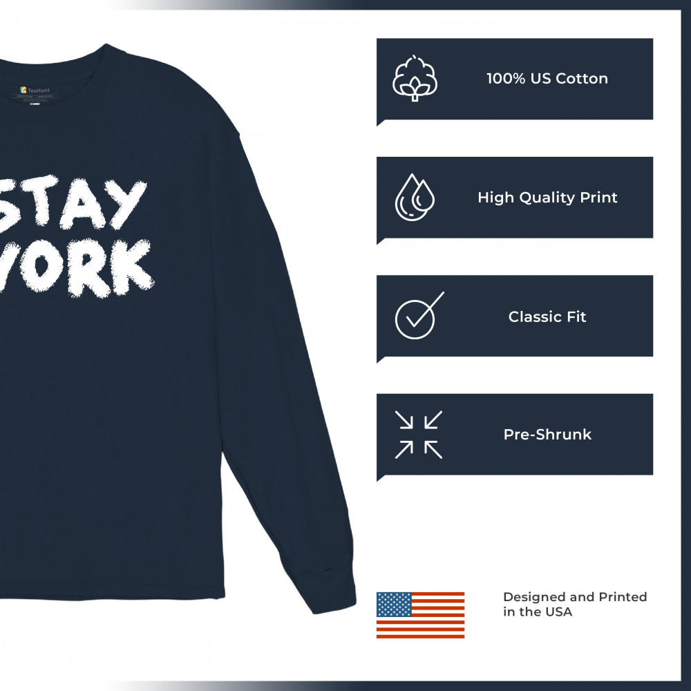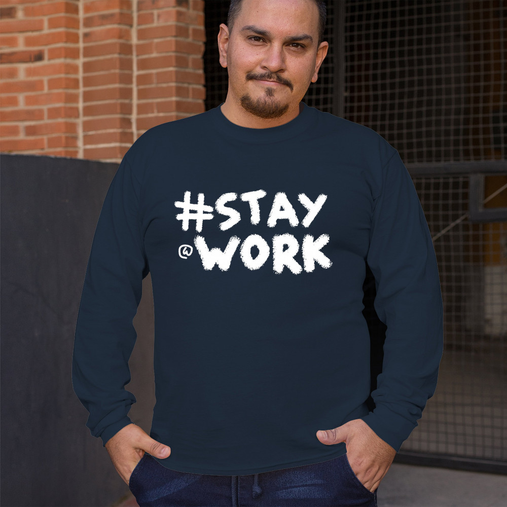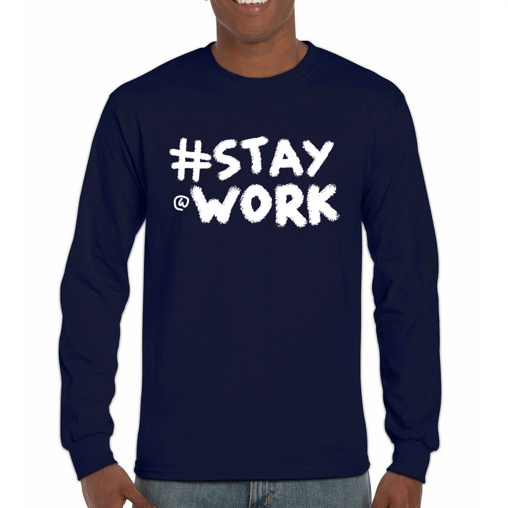 STAY AT WORK FUNNY ELON MUSK TWEET PARODY long sleeve t-shirt liberal sarcasm navy blue