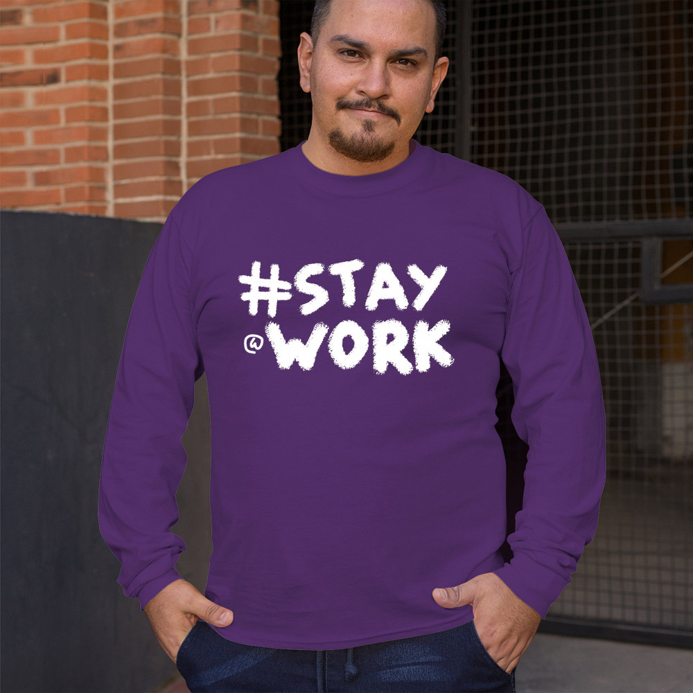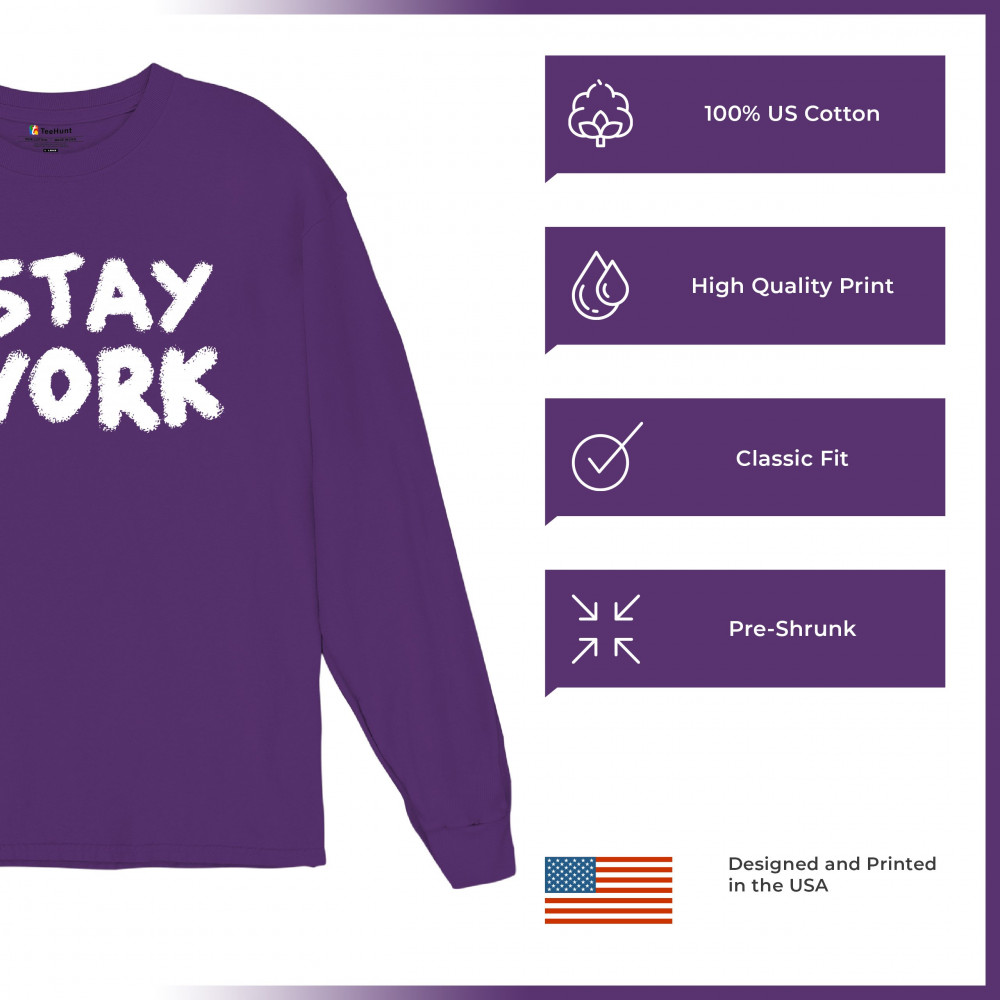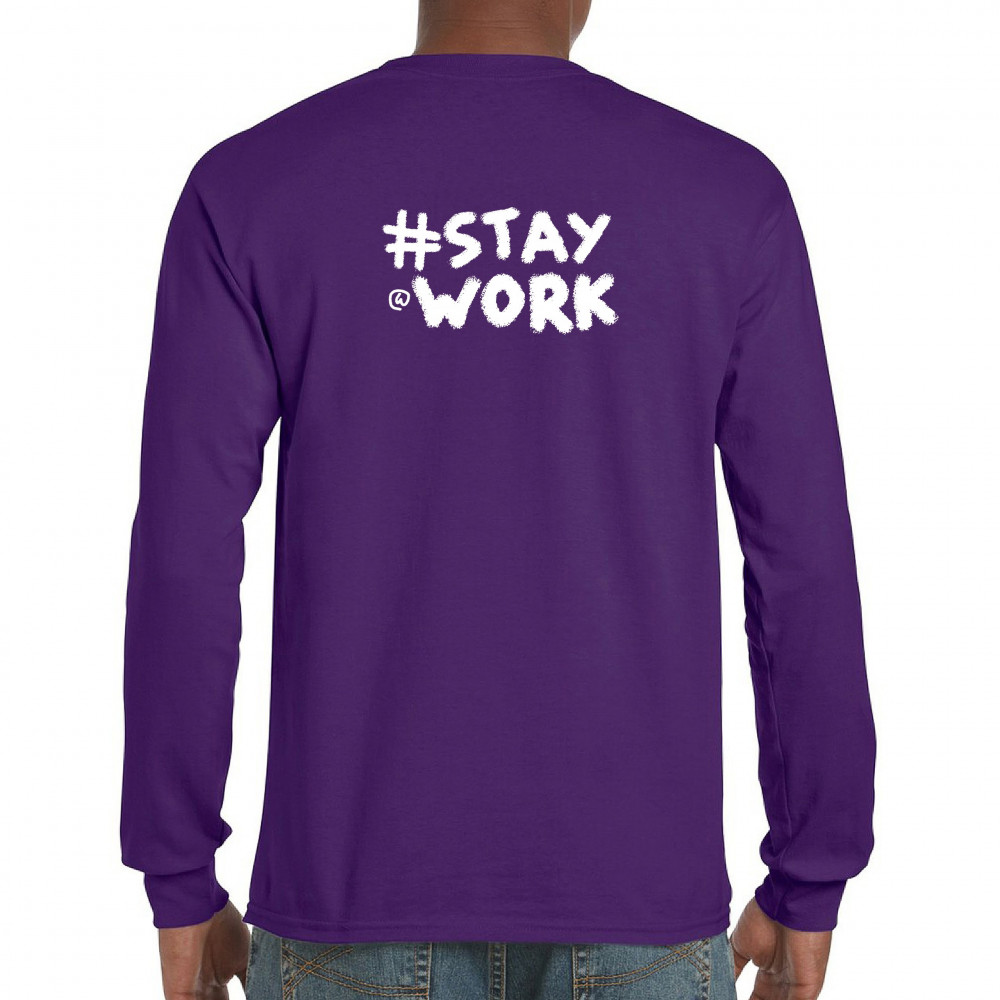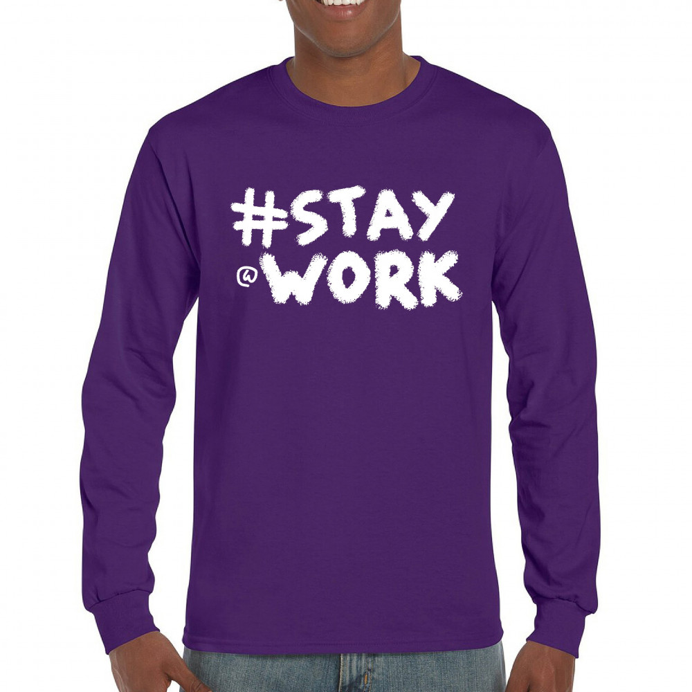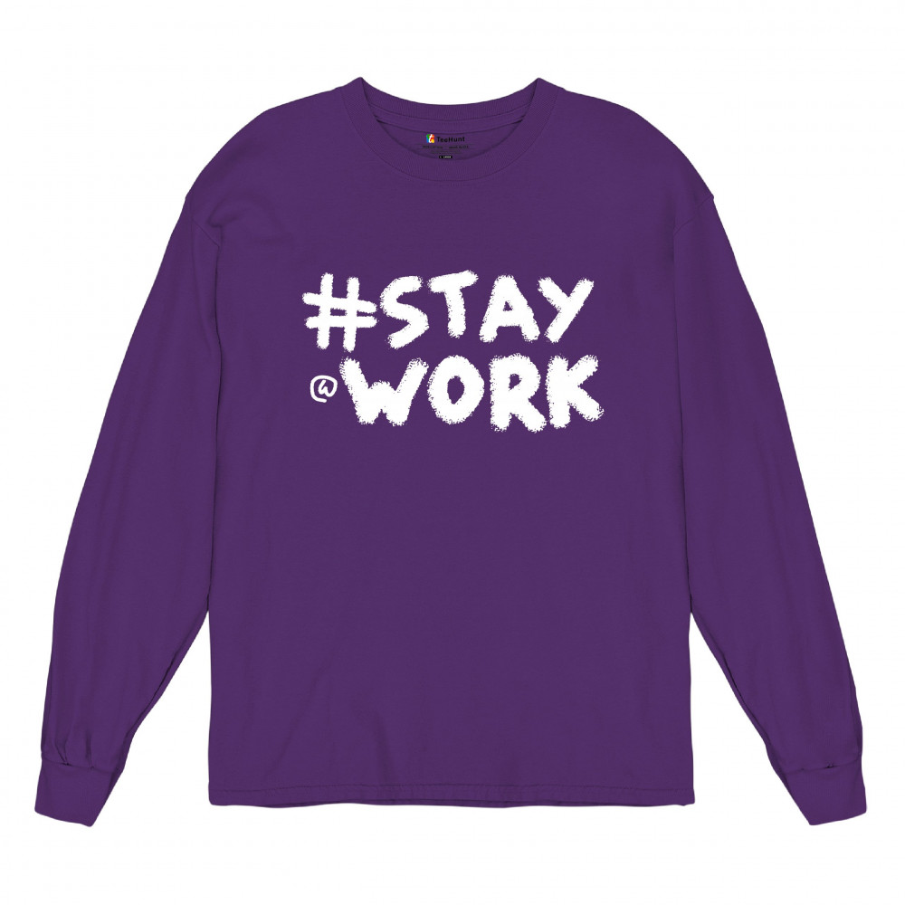 STAY AT WORK FUNNY ELON MUSK TWEET PARODY long sleeve t-shirt liberal sarcasm purple