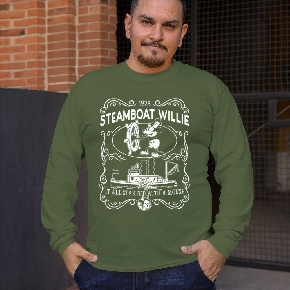 Navigate the waters of nostalgia with Steamboat Willie at the helm, accompanied by the enduring reminder, 'The magic traces back to a little friend.'