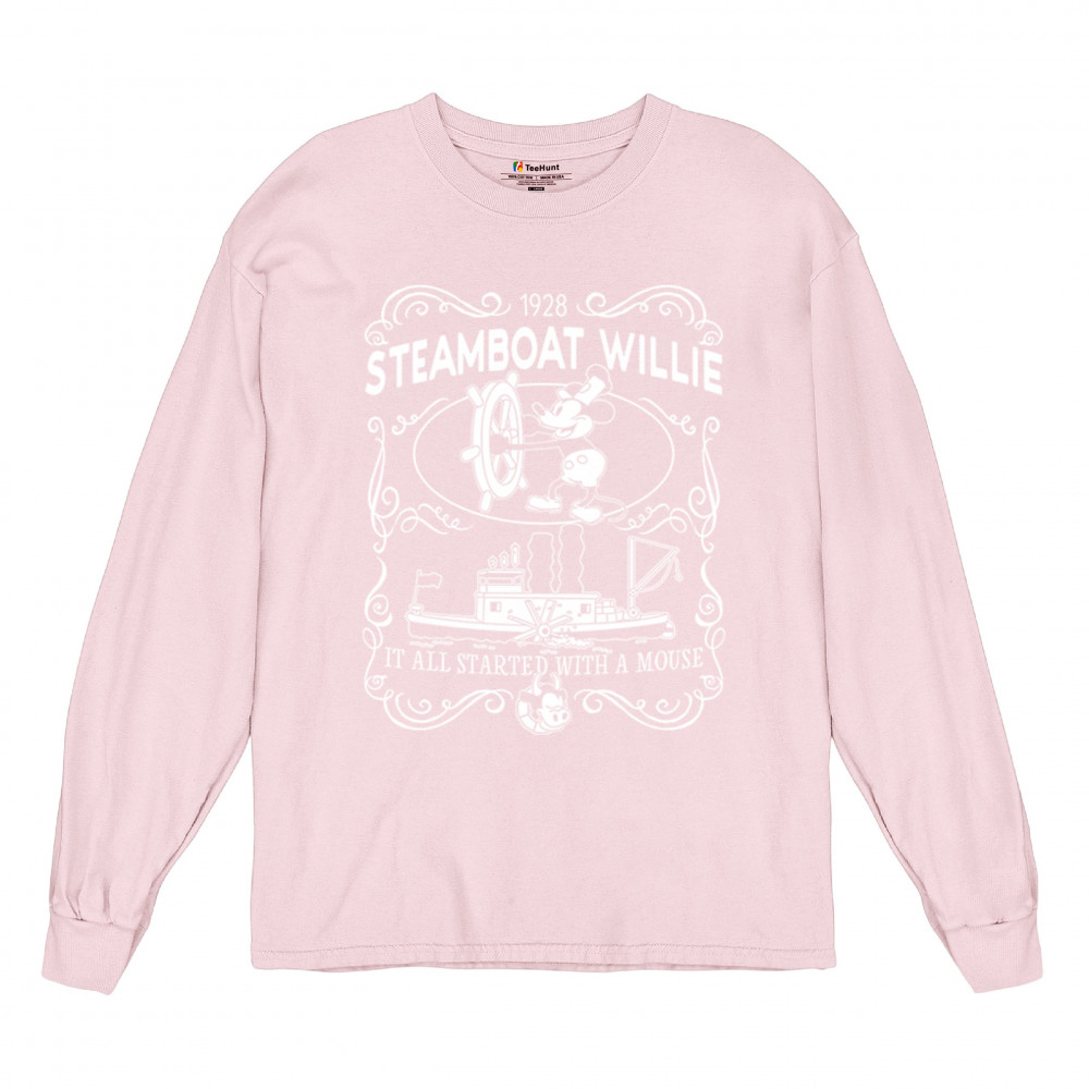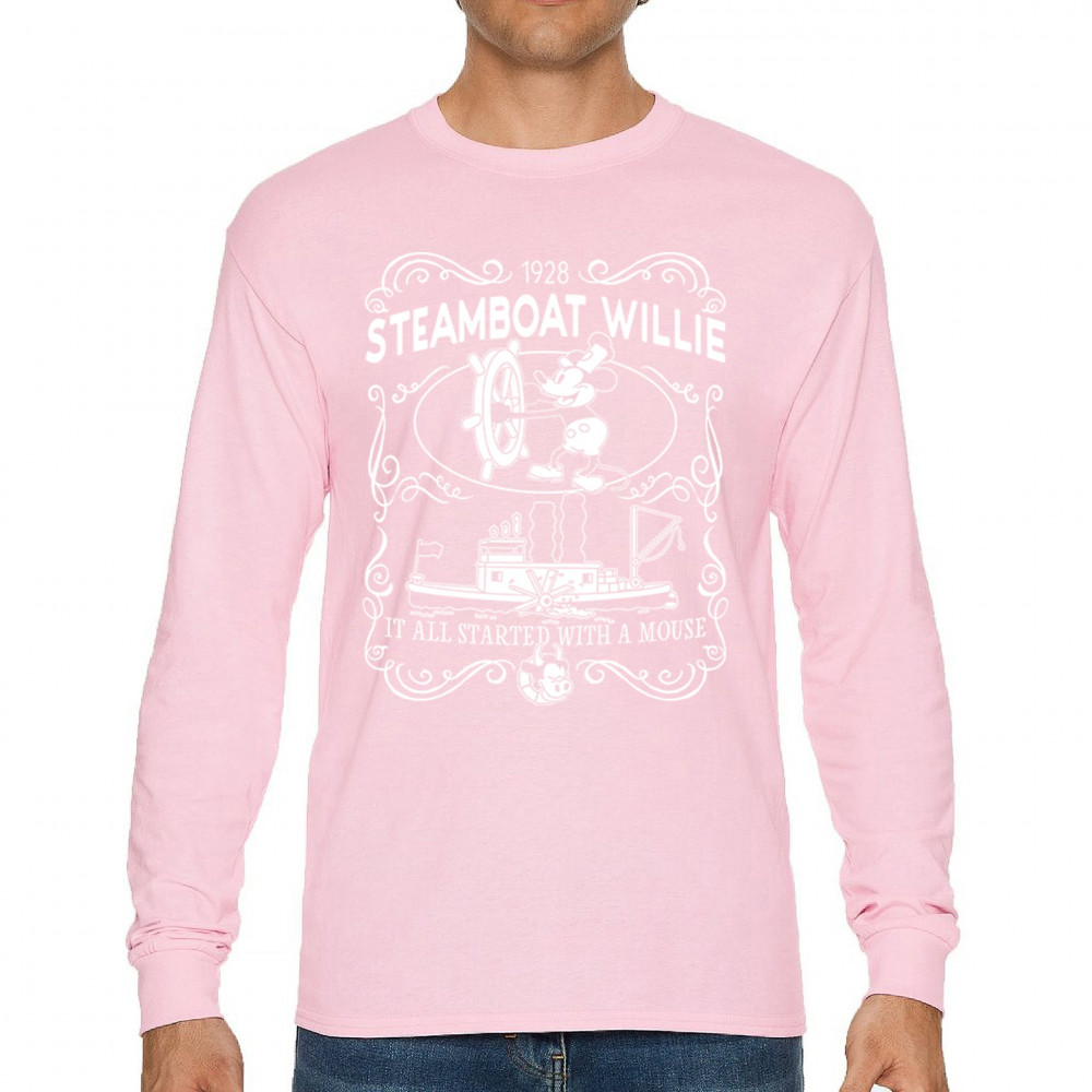 Set sail through the annals of animation as Steamboat Willie commands the vessel, echoing the timeless refrain, 'It all began with a mouse.