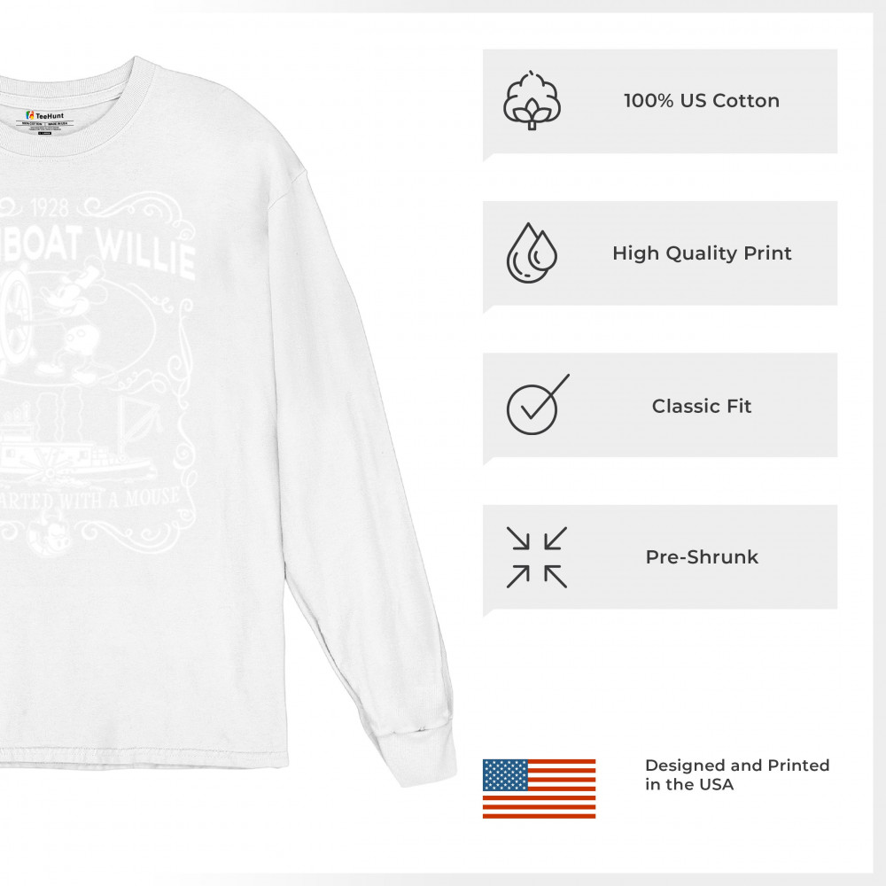 Navigate the waters of nostalgia with Steamboat Willie at the helm, accompanied by the enduring reminder, 'The magic traces back to a little friend.'