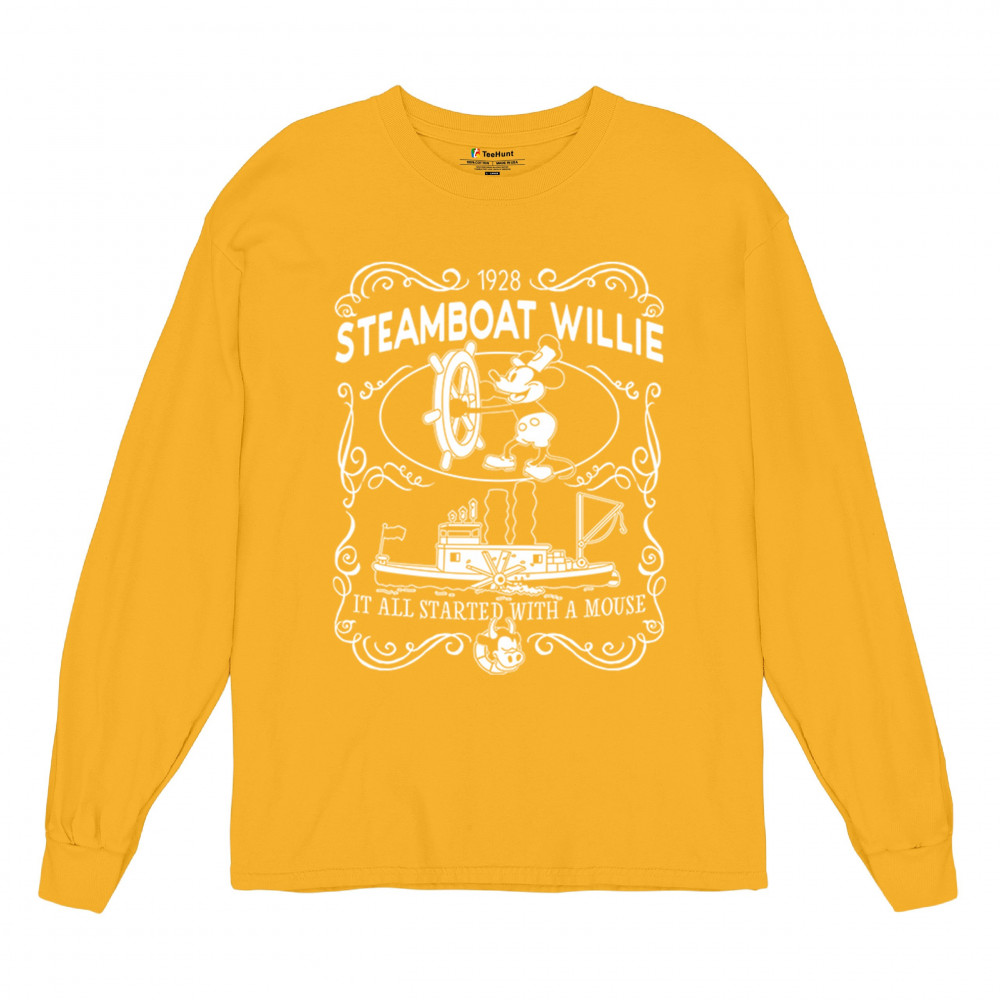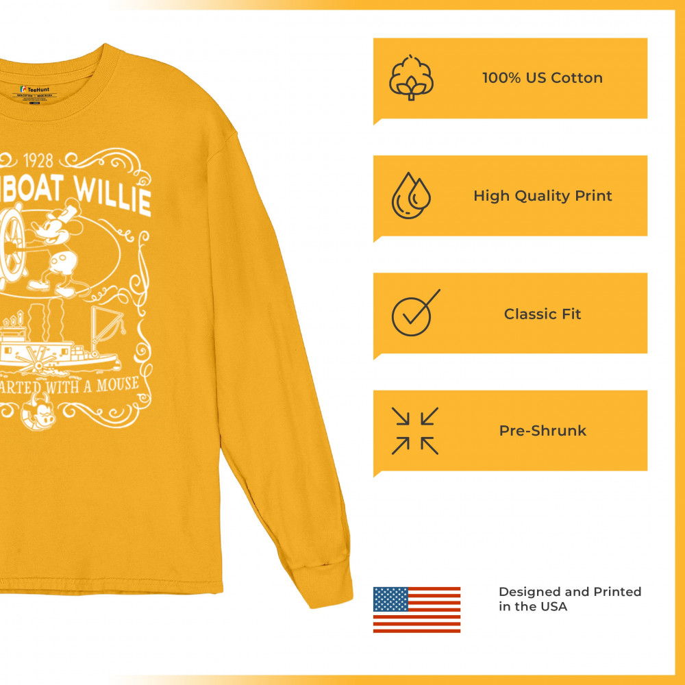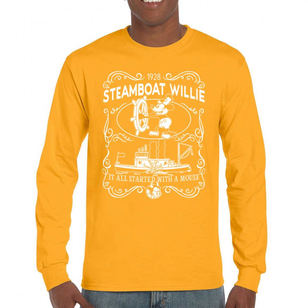 Navigate the waters of nostalgia with Steamboat Willie at the helm, accompanied by the enduring reminder, 'The magic traces back to a little friend.'
