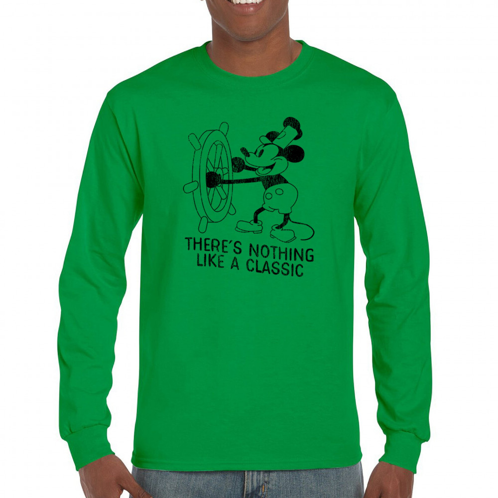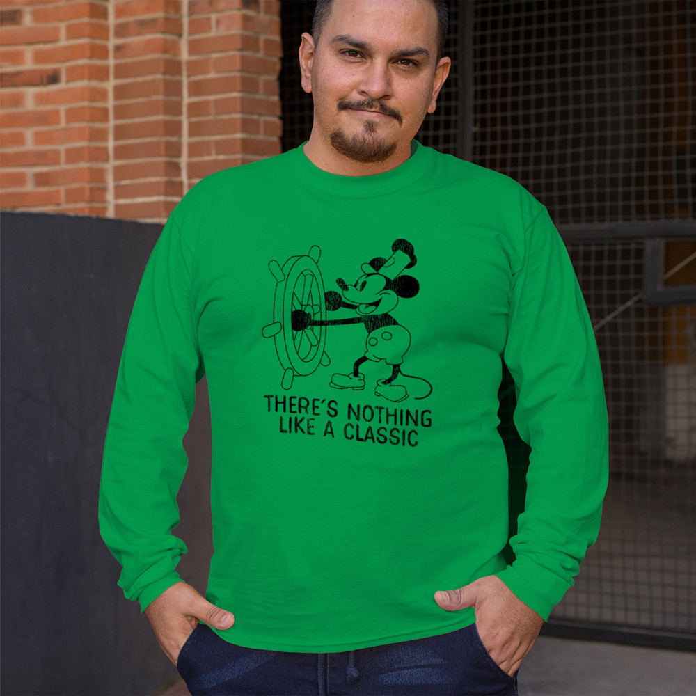 Embrace the magic of an American classic with our 'There is Nothing Like a Classic' tee, featuring Steamboat Willie. Paying homage to the iconic 1928 cartoon, this design is sure to inspire memories of family vacations and timeless traditions. Let the charm of this classic cartoon transport you to a simpler time.