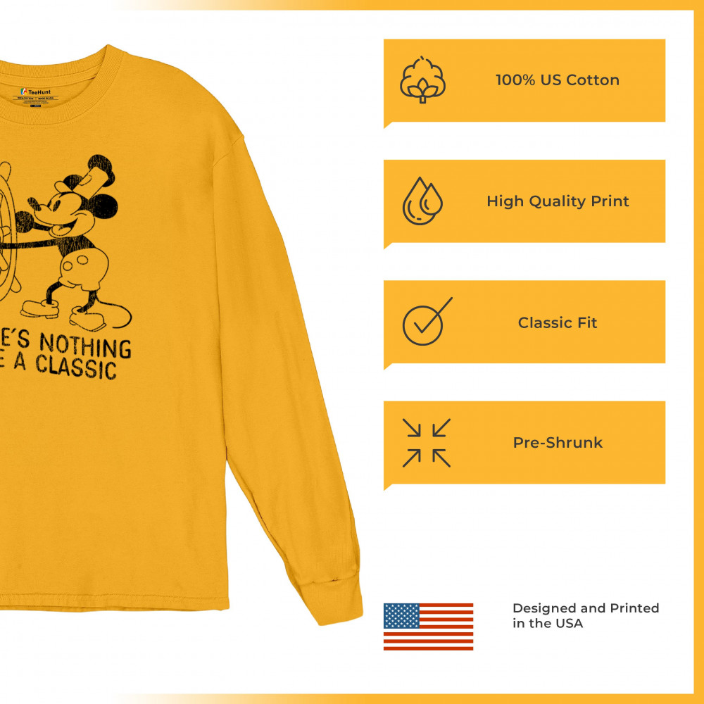 Embrace the magic of an American classic with our 'There is Nothing Like a Classic' tee, featuring Steamboat Willie. Paying homage to the iconic 1928 cartoon, this design is sure to inspire memories of family vacations and timeless traditions. Let the charm of this classic cartoon transport you to a simpler time.
