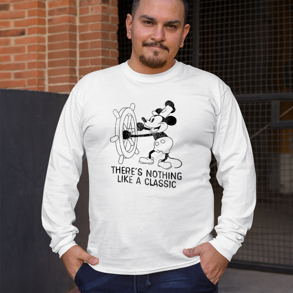 Embrace the magic of an American classic with our 'There is Nothing Like a Classic' tee, featuring Steamboat Willie. Paying homage to the iconic 1928 cartoon, this design is sure to inspire memories of family vacations and timeless traditions. Let the charm of this classic cartoon transport you to a simpler time.