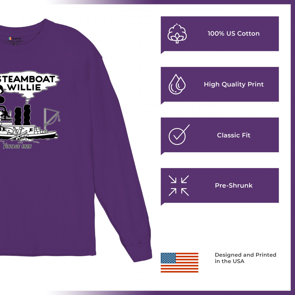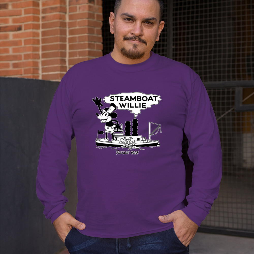 Channel the charm of a bygone era with our 'Steamboat Willie Vintage 1928' tee, paying tribute to this beloved American classic. Perfect for beach days and family vacations alike, this design evokes feelings of nostalgia and whimsy. Let Steamboat Willie i