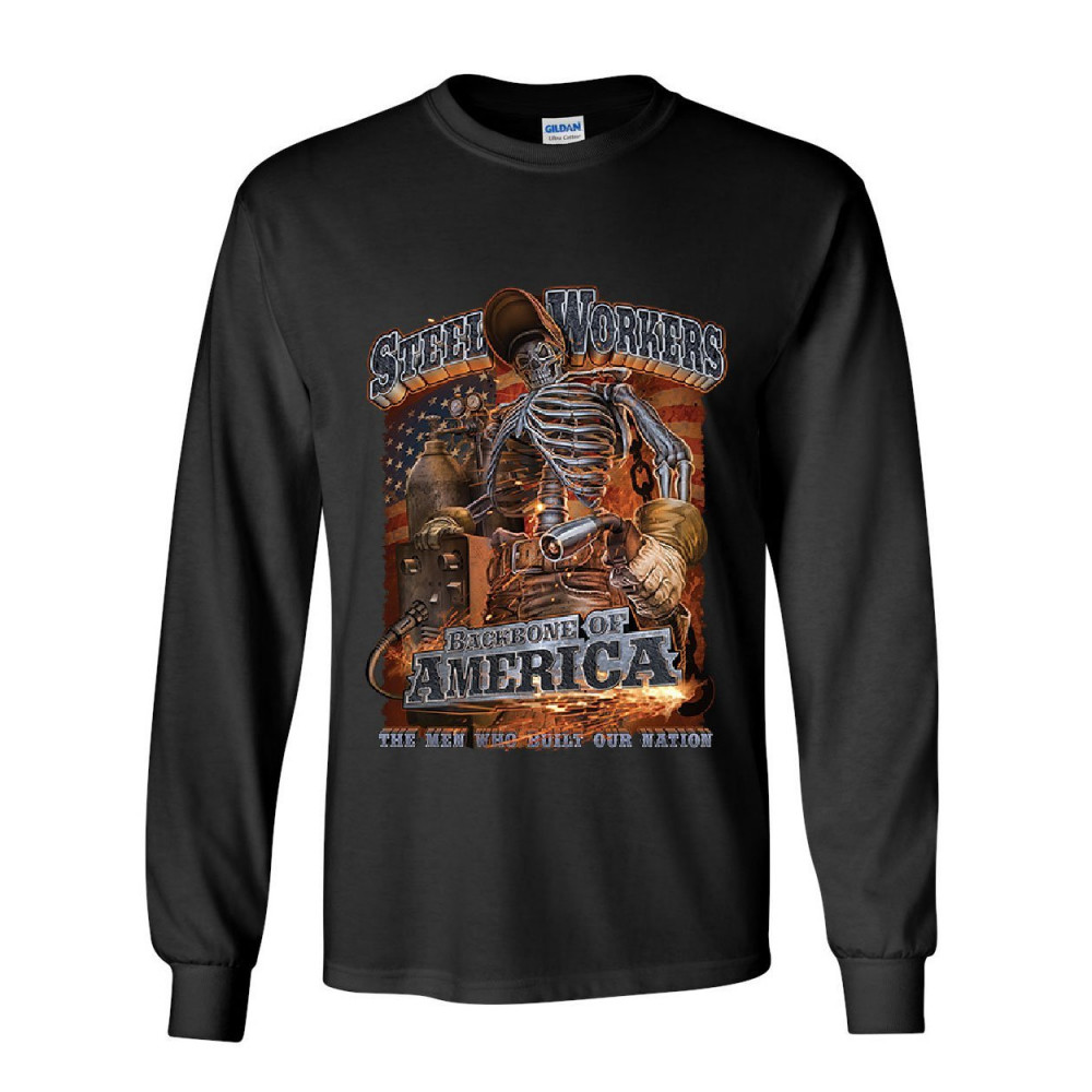 STEELWORKERS - BACKBONE OF AMERICA steel workers backbone of america long sleeve t-shirt welding iron metal tee black