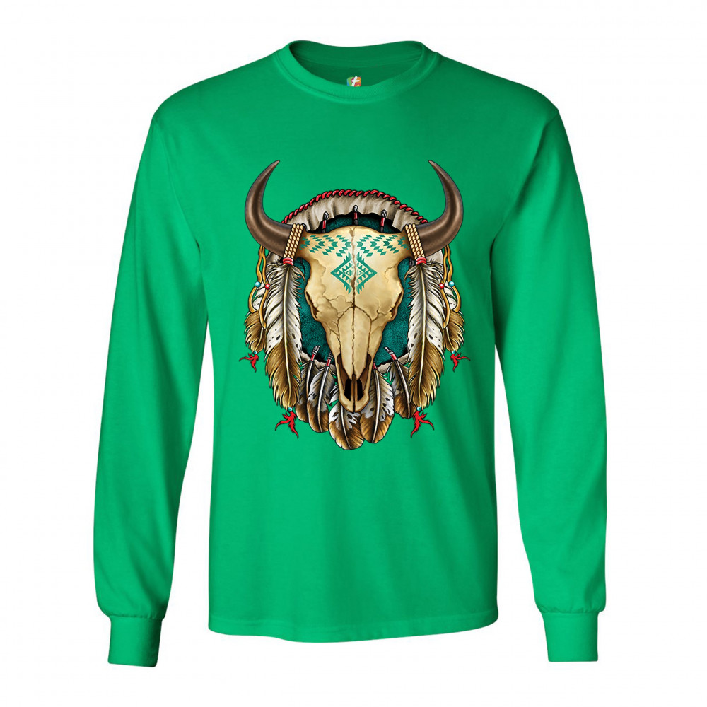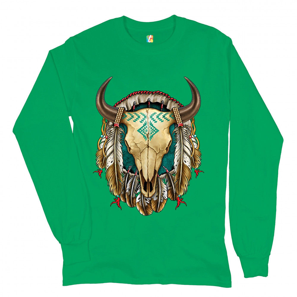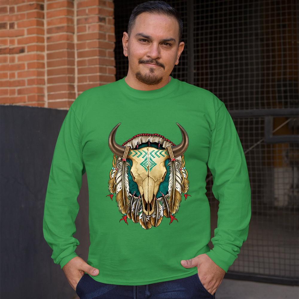 STEER SKULL DREAMCATCHER long sleeve t-shirt native american indigenous culture green