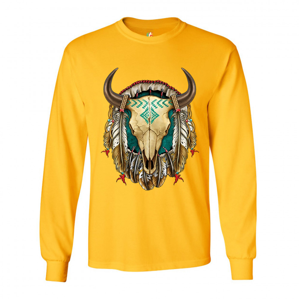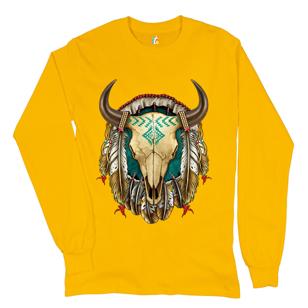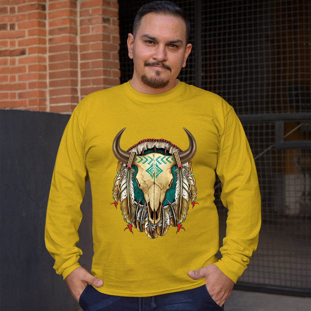 STEER SKULL DREAMCATCHER long sleeve t-shirt native american indigenous culture yellow