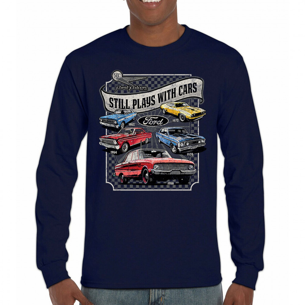 Still Plays With Cars pays tribute to the Ford Falcon, showcasing legendary models from the 60s and 70s for true vintage car lovers. Perfect for gearheads, hot rod fans, and classic car collectors, this design celebrates retro automobile culture, vintage horsepower, and old school rides. A great value piece for anyone devoted to the classic car scene.
