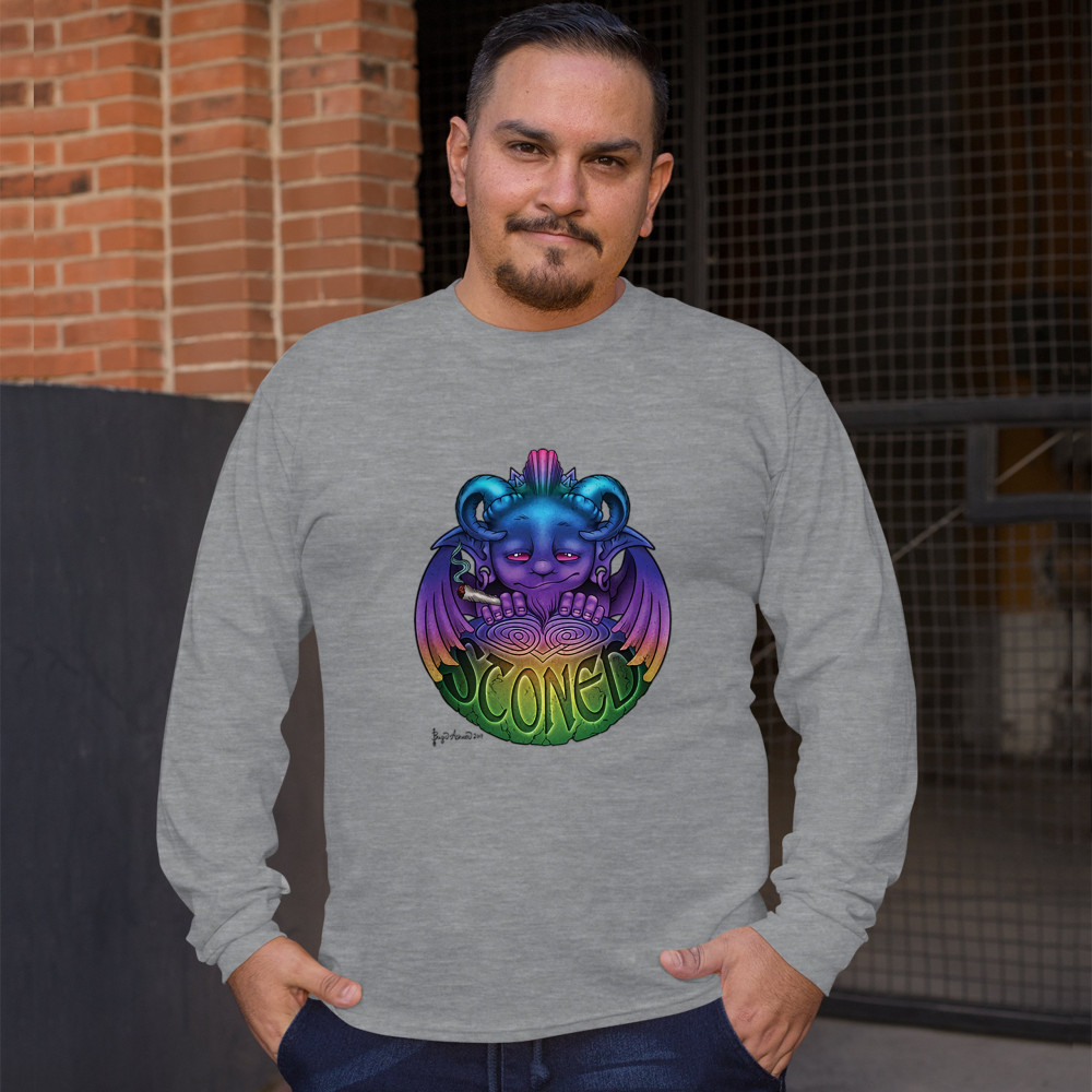 STONED GARGOYLE long sleeve t-shirt pot marijuana joint funny weird 420 gray
