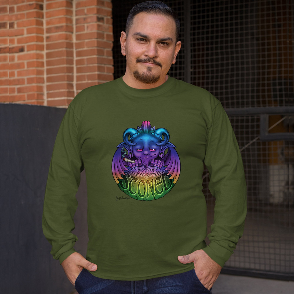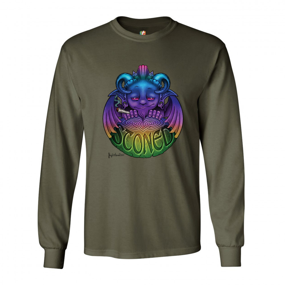 STONED GARGOYLE long sleeve t-shirt pot marijuana joint funny weird 420 military green