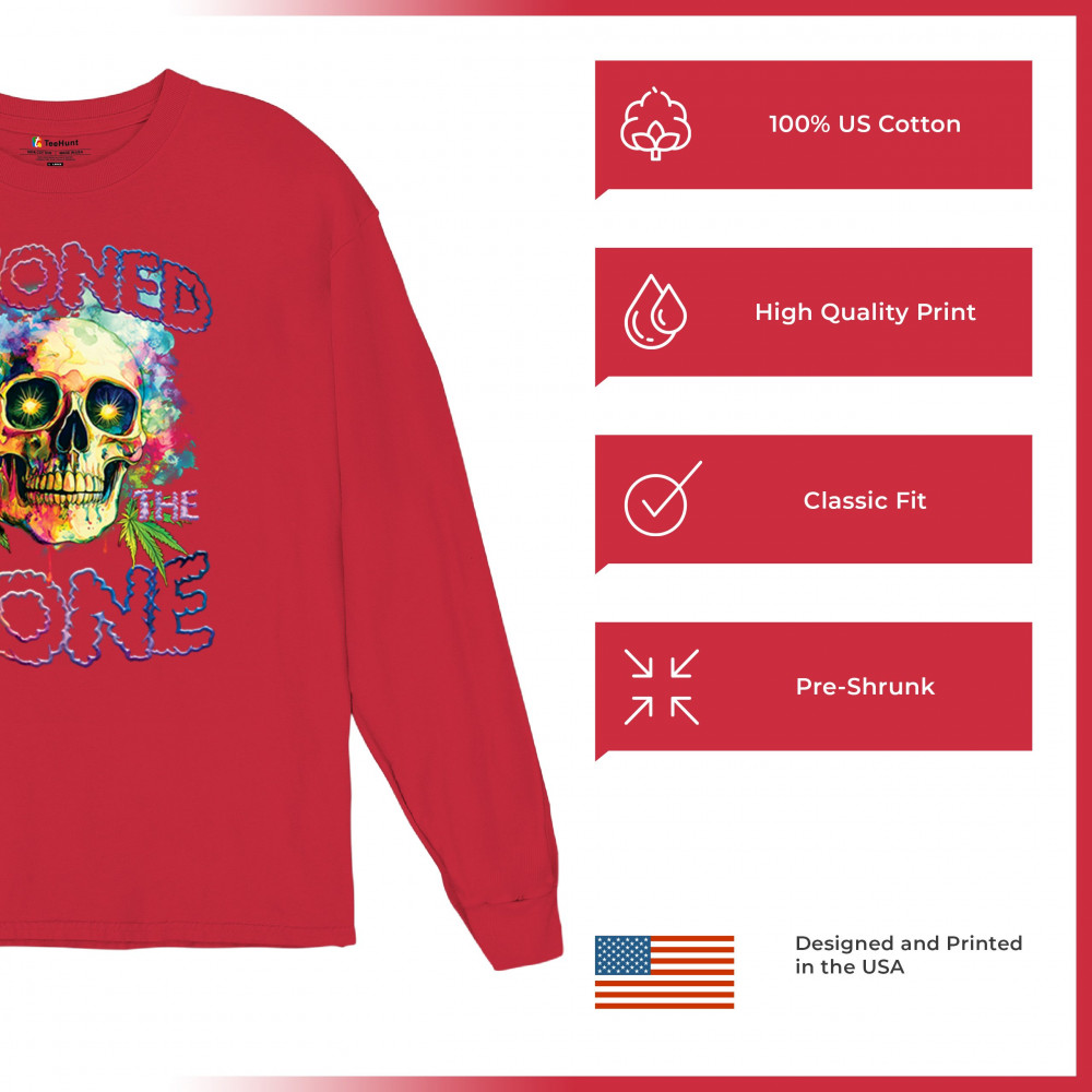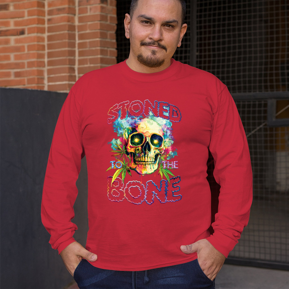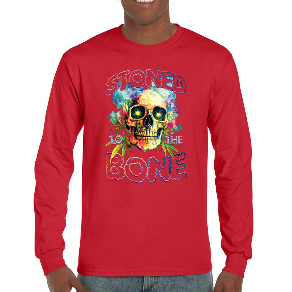 Turn heads with this bold, psychedelic “Stoned to the Bone†skull tee—loaded with neon colors, weed leaves, and a trippy aesthetic. It’s built for cannabis lovers, hippies, festival-goers, and party people living the high life. The ultimate head shop style and 420 fashion statement.