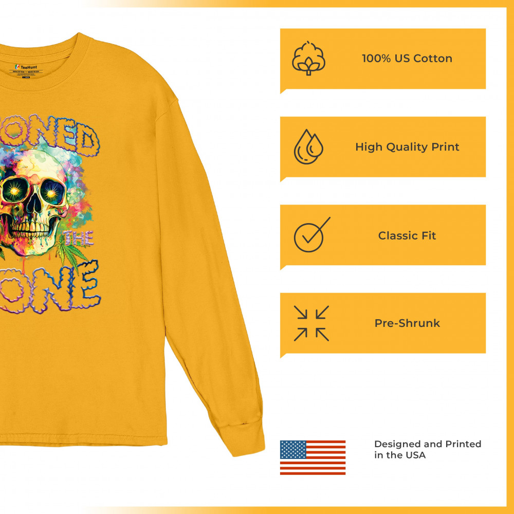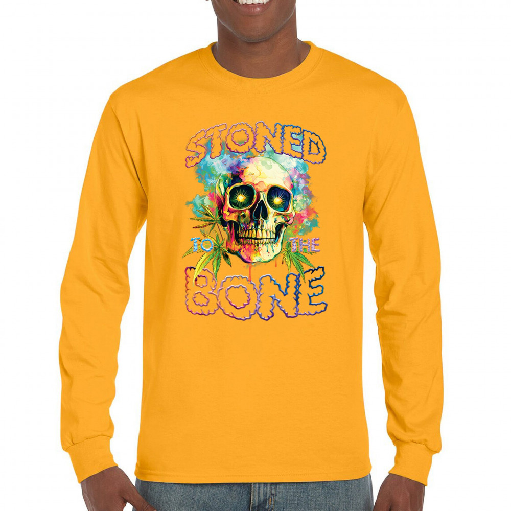Turn heads with this bold, psychedelic “Stoned to the Bone†skull tee—loaded with neon colors, weed leaves, and a trippy aesthetic. It’s built for cannabis lovers, hippies, festival-goers, and party people living the high life. The ultimate head shop style and 420 fashion statement.