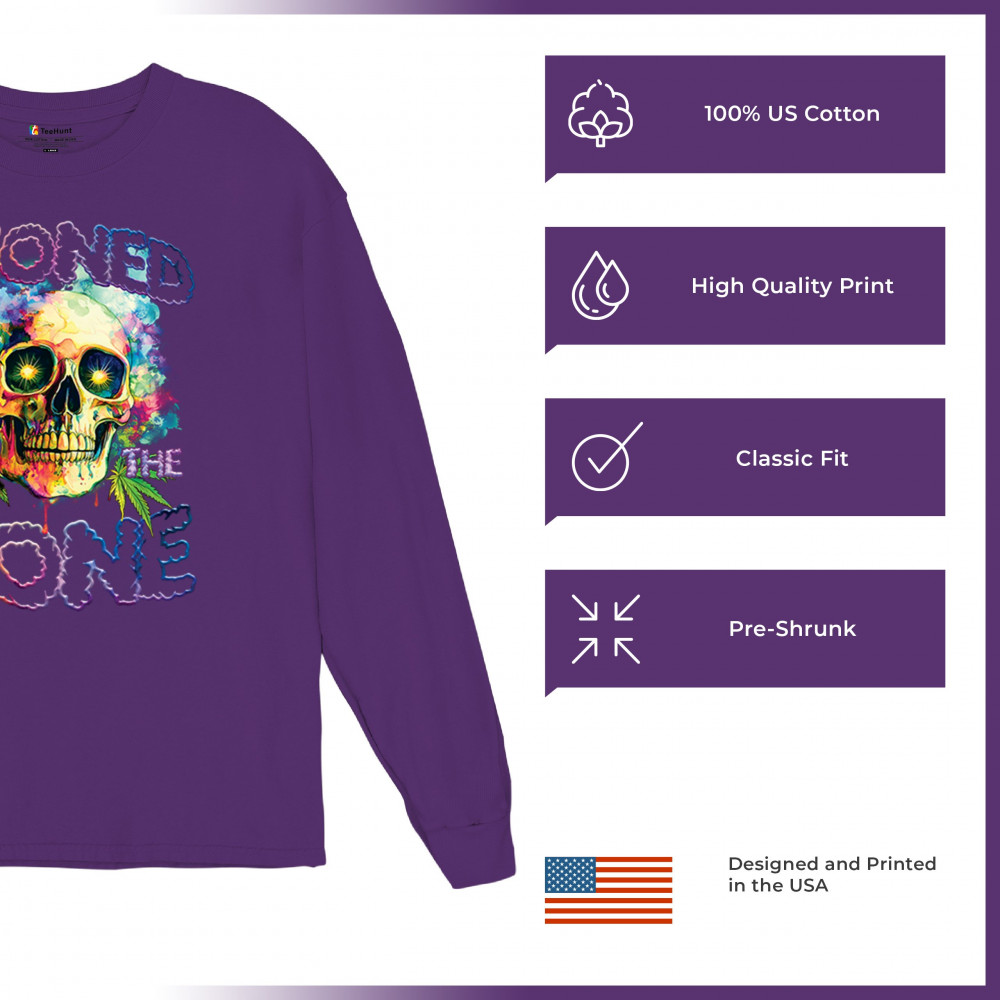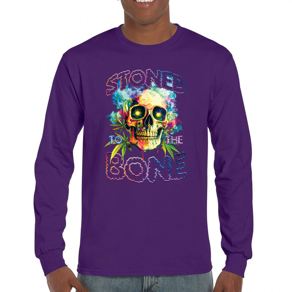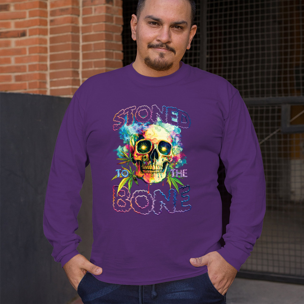 Turn heads with this bold, psychedelic “Stoned to the Bone†skull tee—loaded with neon colors, weed leaves, and a trippy aesthetic. It’s built for cannabis lovers, hippies, festival-goers, and party people living the high life. The ultimate head shop style and 420 fashion statement.