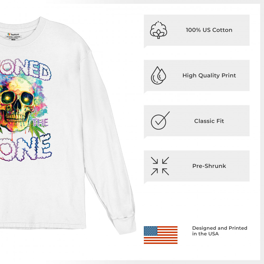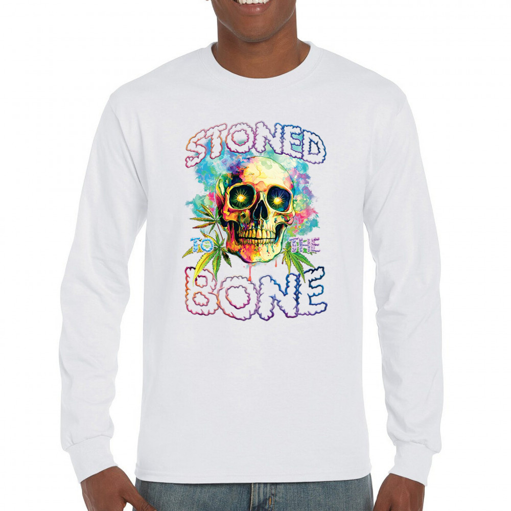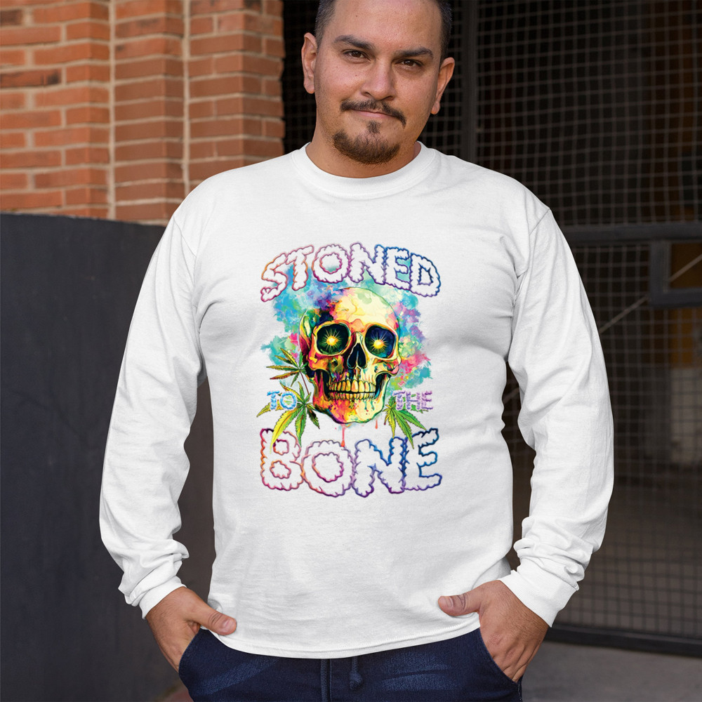 Turn heads with this bold, psychedelic “Stoned to the Bone†skull tee—loaded with neon colors, weed leaves, and a trippy aesthetic. It’s built for cannabis lovers, hippies, festival-goers, and party people living the high life. The ultimate head shop style and 420 fashion statement.