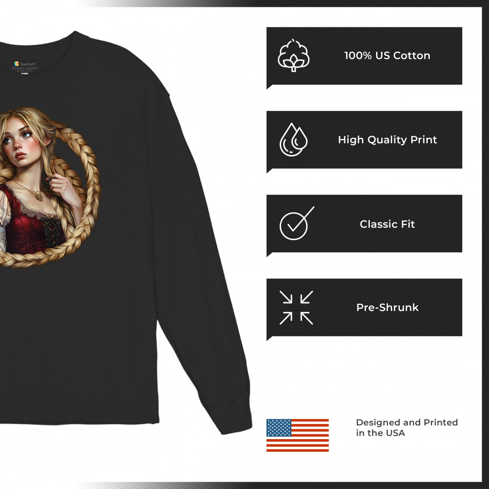 STORYBOOK RAPUNZEL long sleeve t-shirt fairytale blonde hair fantasy princess black