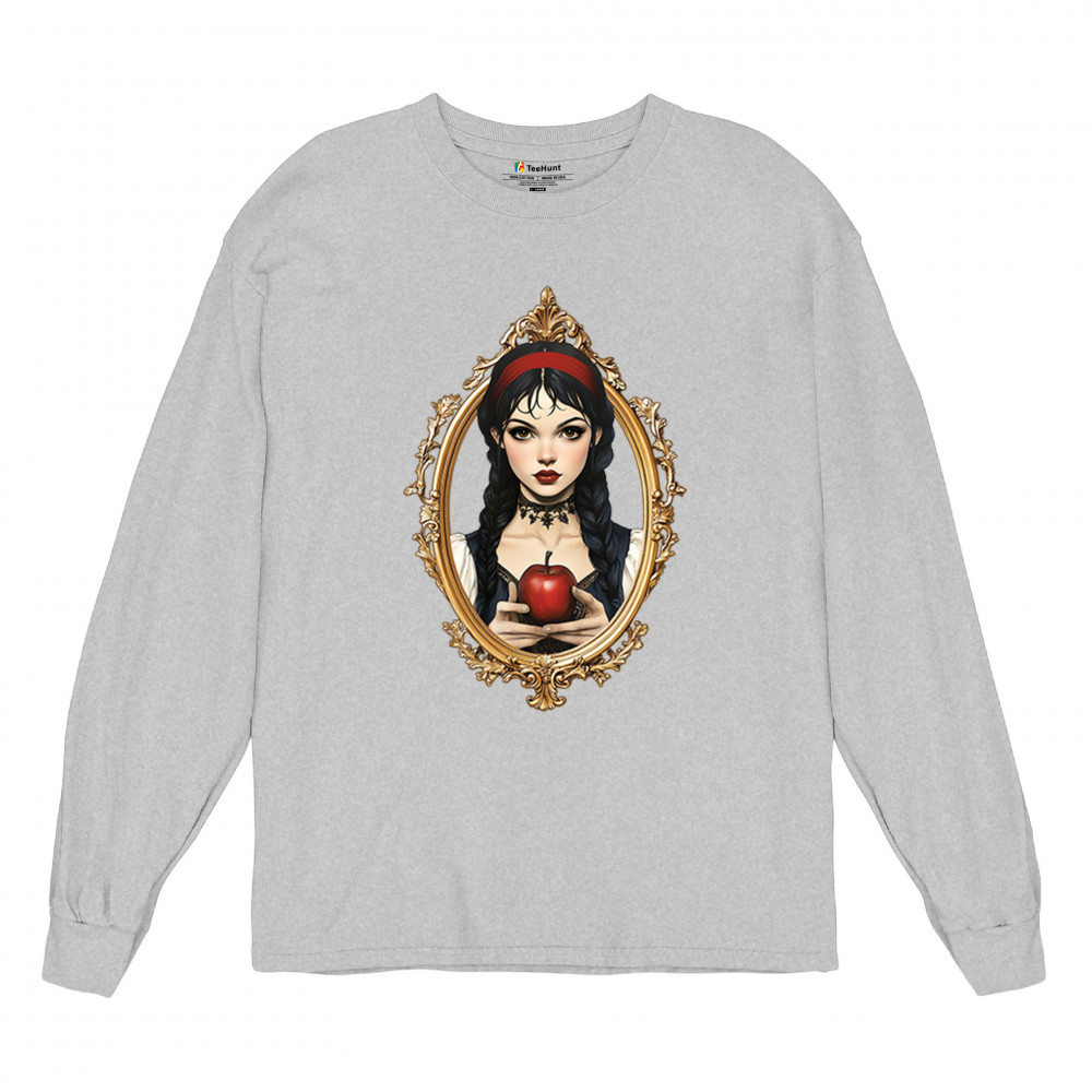 This enchanting design brings to life a gothic-inspired girl holding a red apple, encased in a regal vintage mirror frame. With elements pulled from Snow White, fairytales, and fantasy symbolism, it blends innocence and temptation with dark romanticism. Perfect for dreamers, collectors, and lovers of magical narratives and visual elegance.