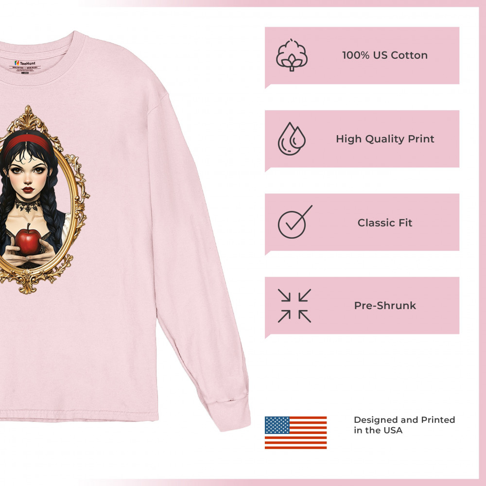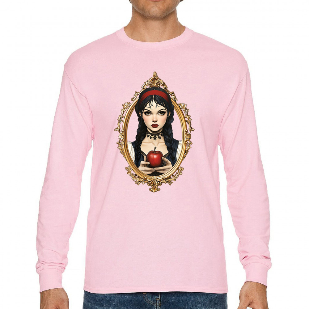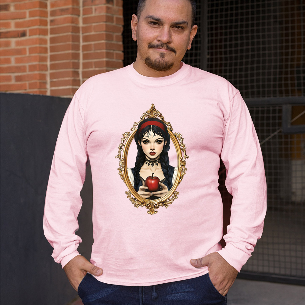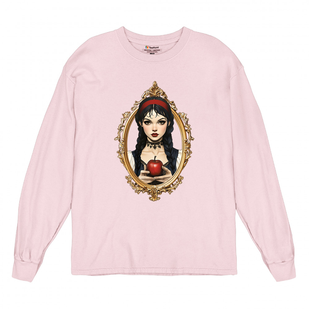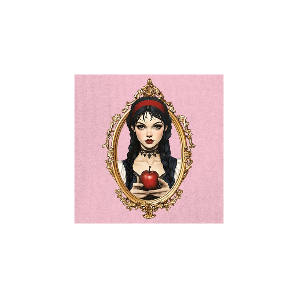 This enchanting design brings to life a gothic-inspired girl holding a red apple, encased in a regal vintage mirror frame. With elements pulled from Snow White, fairytales, and fantasy symbolism, it blends innocence and temptation with dark romanticism. Perfect for dreamers, collectors, and lovers of magical narratives and visual elegance.