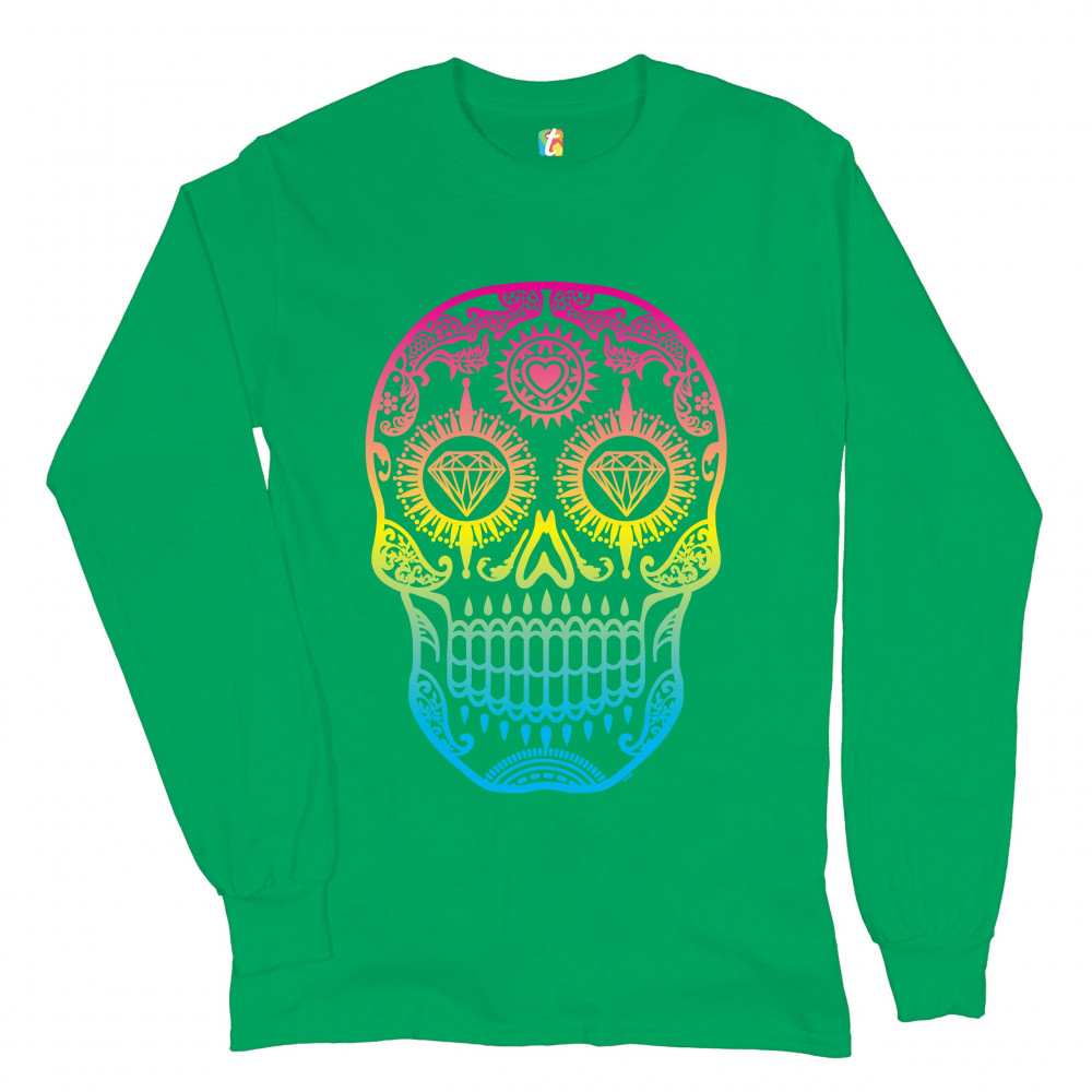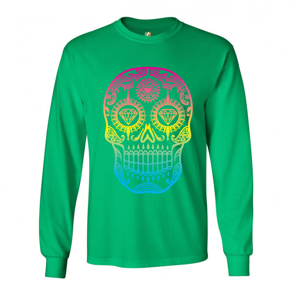 SUGAR SKULL CALAVERA DIAMOND EYES long sleeve t-shirt day of the dead green