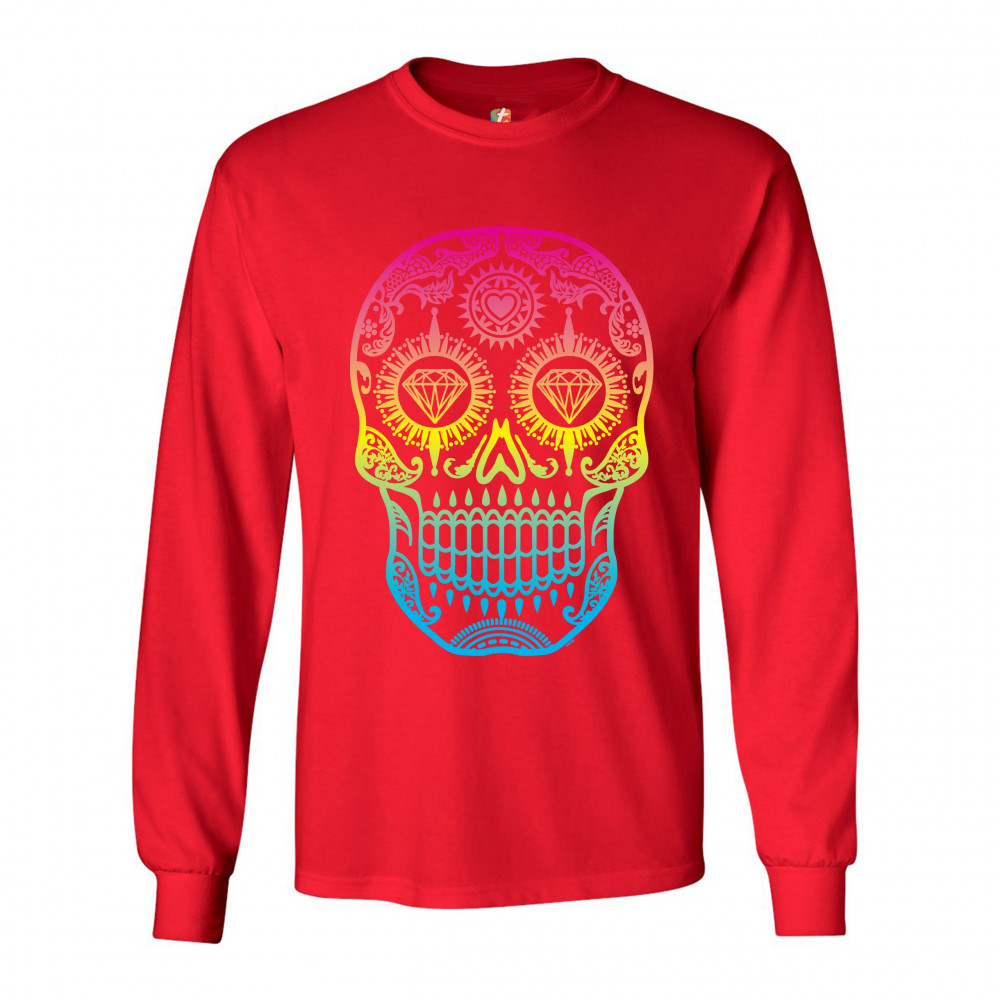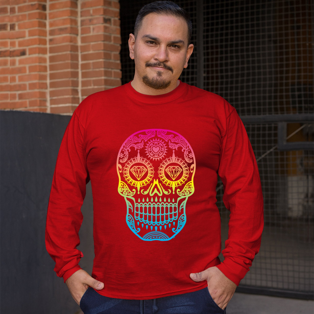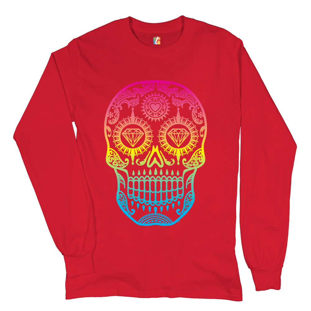 SUGAR SKULL CALAVERA DIAMOND EYES long sleeve t-shirt day of the dead red