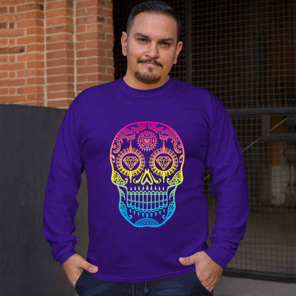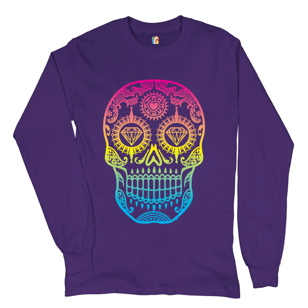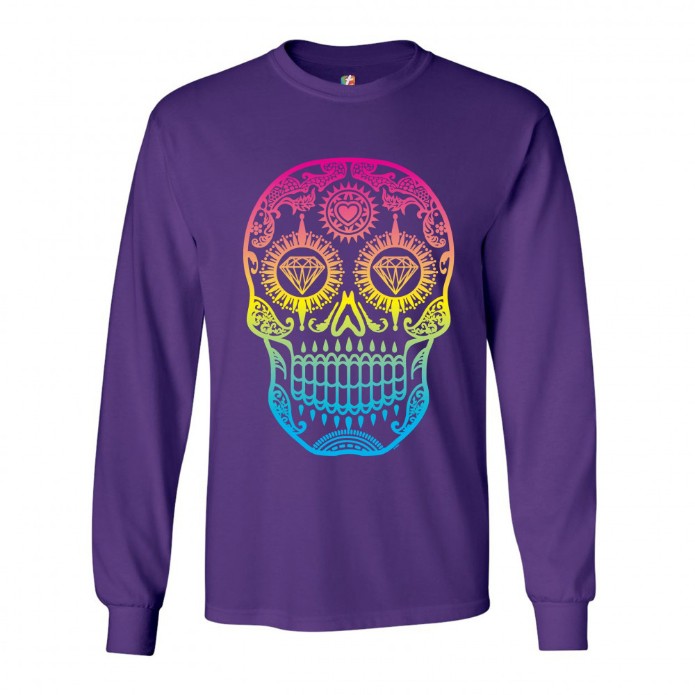 SUGAR SKULL CALAVERA DIAMOND EYES long sleeve t-shirt day of the dead purple