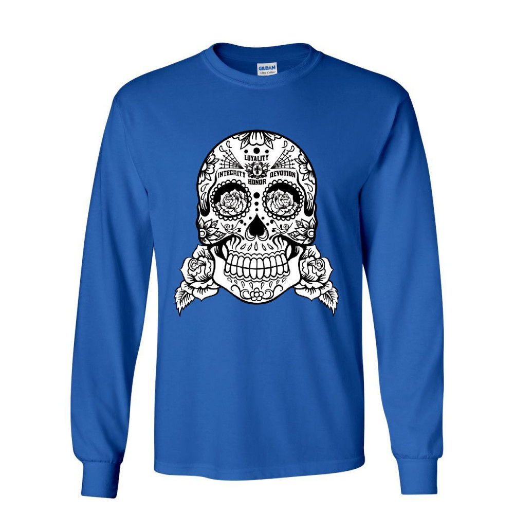 SUGAR SKULL long sleeve t-shirtloyalty integrity devotion honor royal blue
